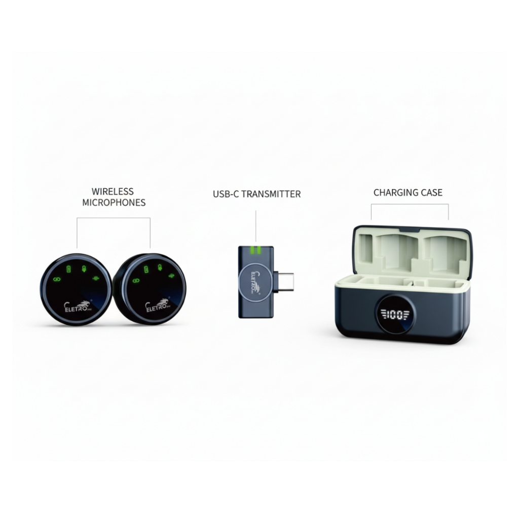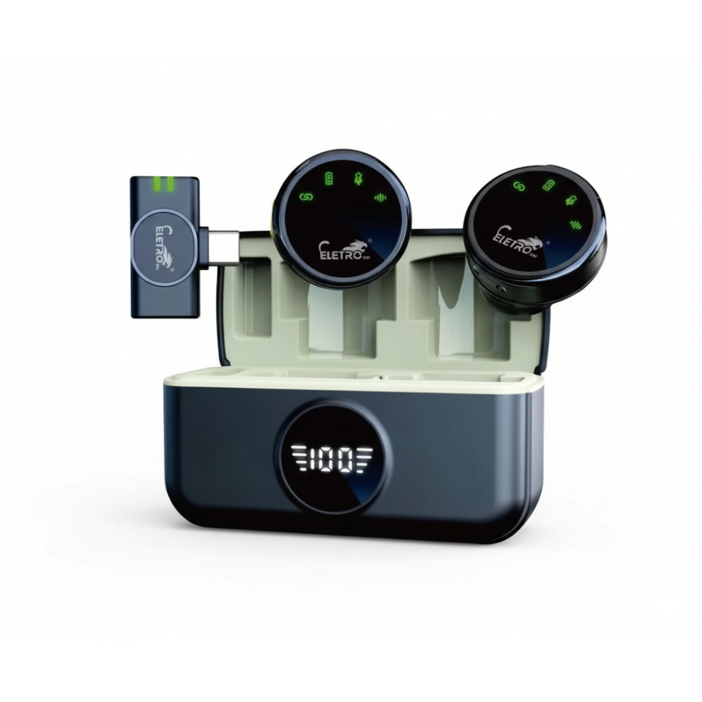 Microfone Lapela Magnético Sem Fio com Cancelamento de Ruído Tipo C para iPhone/Android Vlog TikTok Gravação de Vídeos