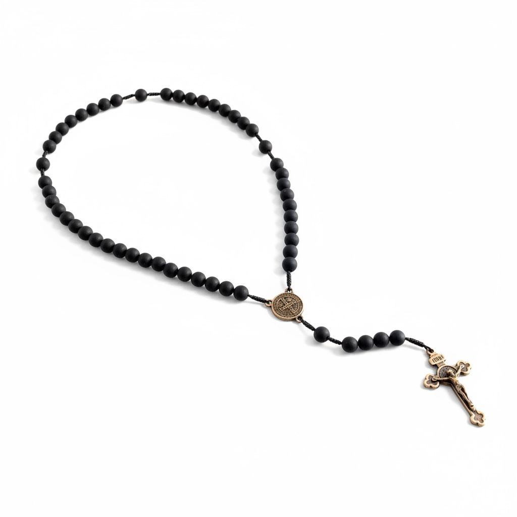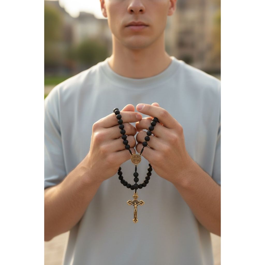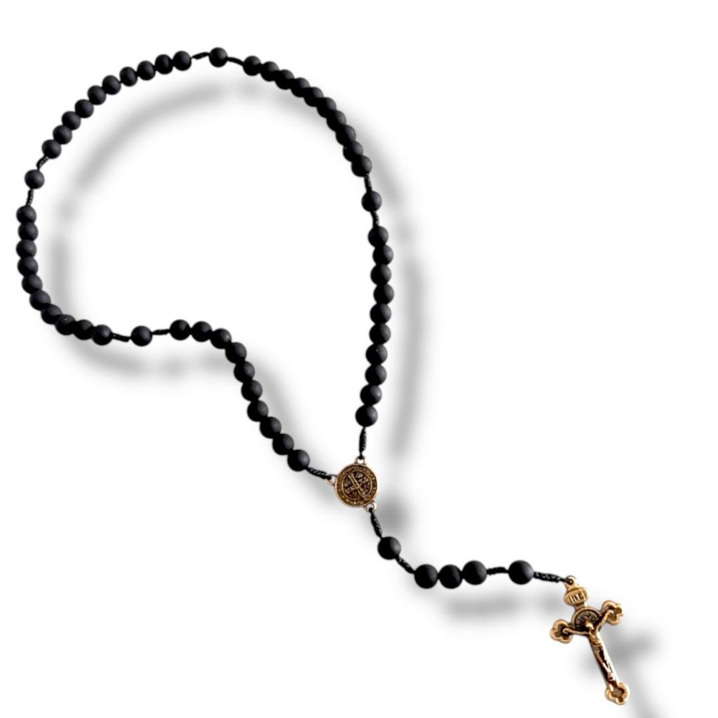 Terço De Mão Madeira Preto Fosco Cruz São Bento