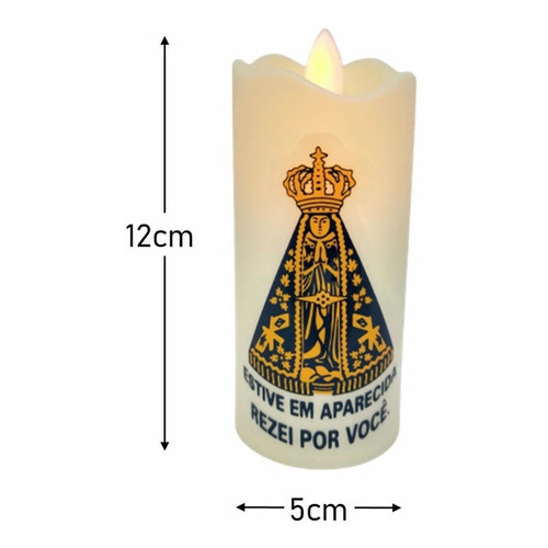 Kit 2 Velas De Led Eletrônica Chama Viva Pilhas Nossa Senhora Aparecida + Pilhas AA