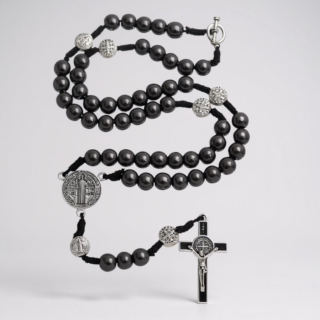 Terço De Pescoço São Bento Com Pedra De Hematita