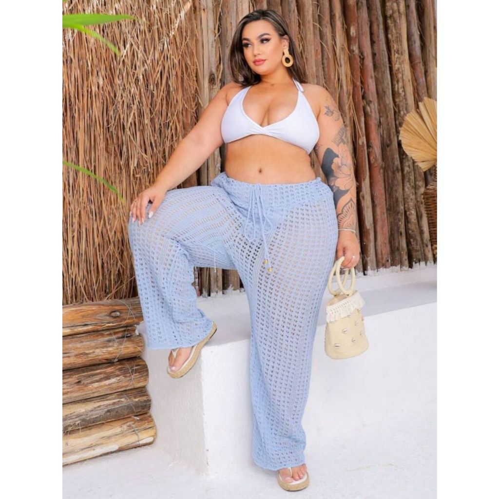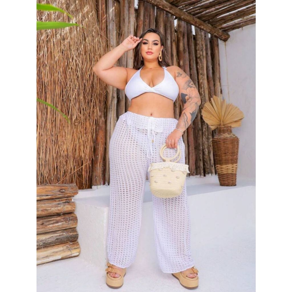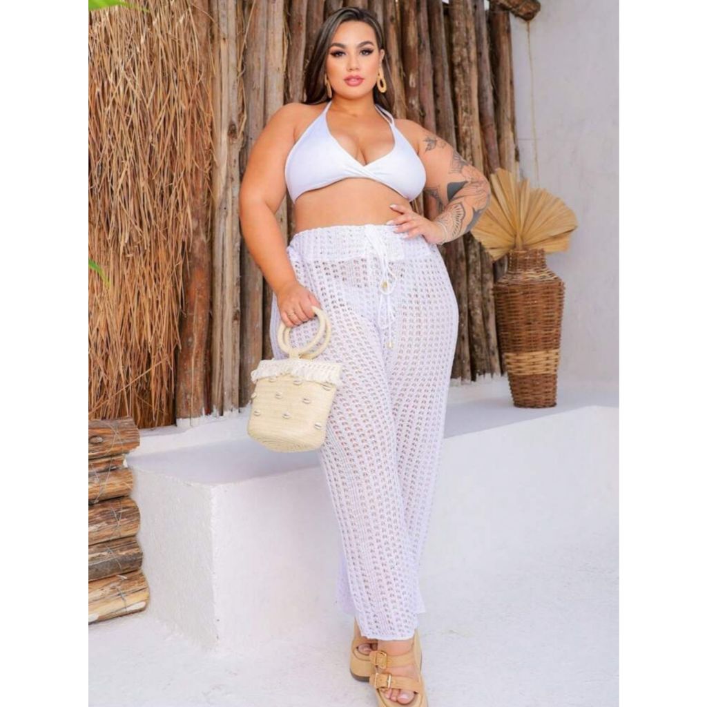 Calça Saida de praia Plus SIZE tricot com ajuste na cintura ELEGANTE