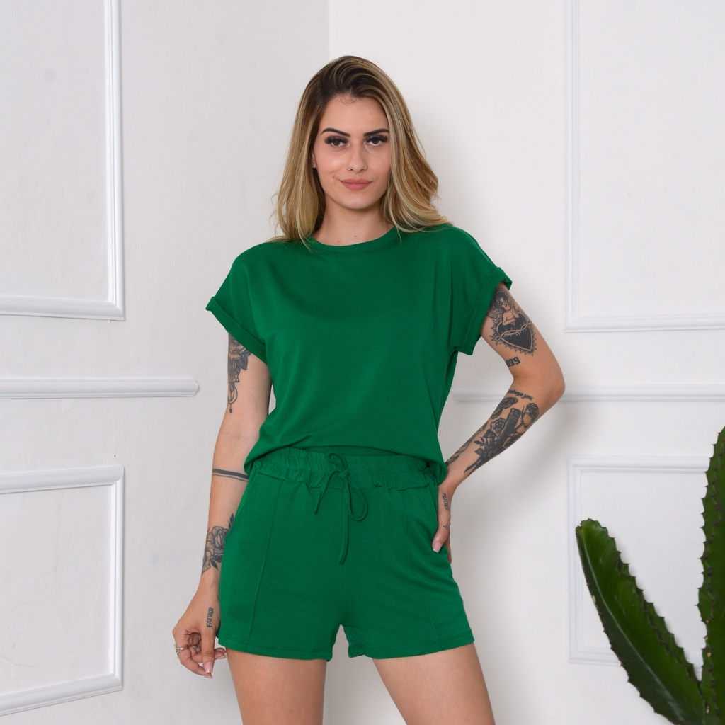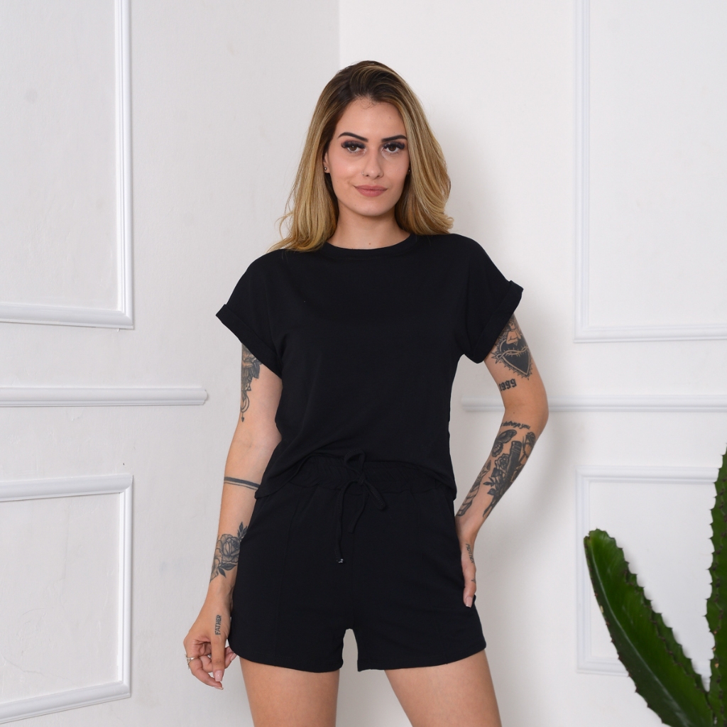 conjunto feminino blusa + short moletinho