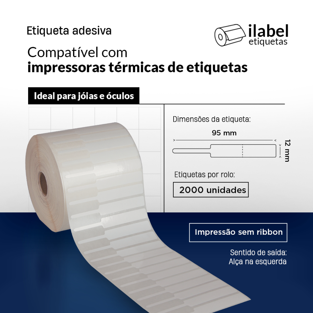 Etiqueta adesiva de jóias 95x12mm (alça esquerda) Térmica (impressão sem ribbon) - Rolo 30m