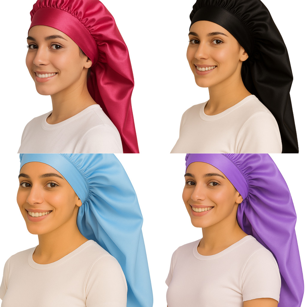 Touca para Dormir em Seda Toca de Cetim Longa para Cabelos Longos Tranças Box Braids