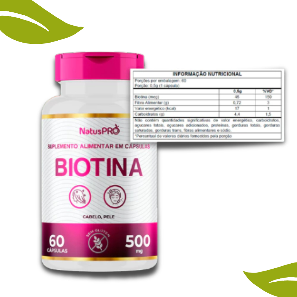 Biotina 500mg 60 Cápsulas Cabelo, Pele e Unha - Natuspro