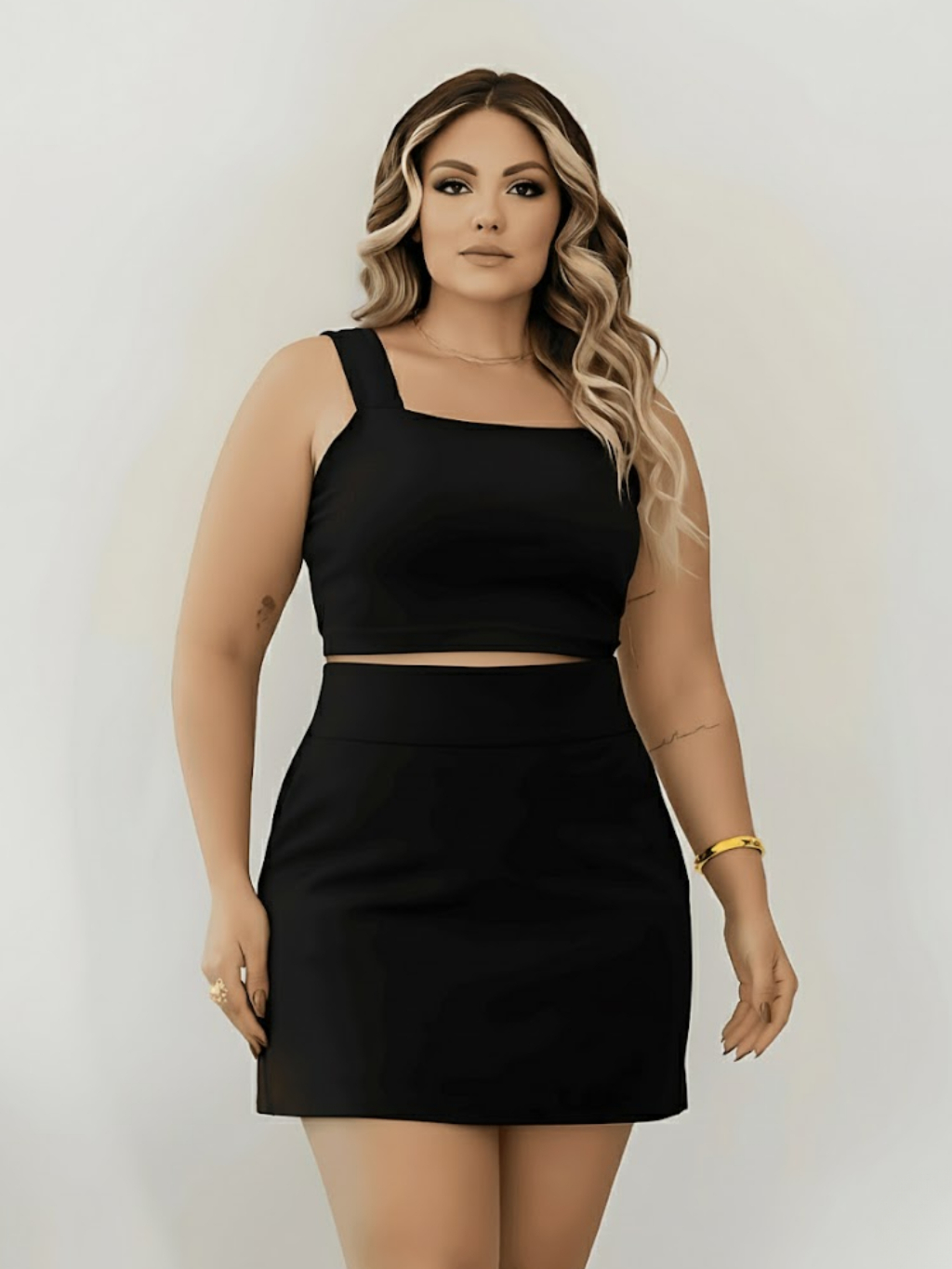 Conjunto Feminino Blusa Cropped Com Short Saia Plus Size - Conjuntinho Plus Curve