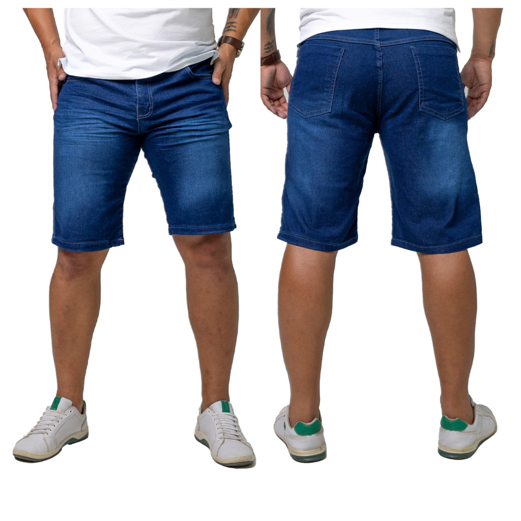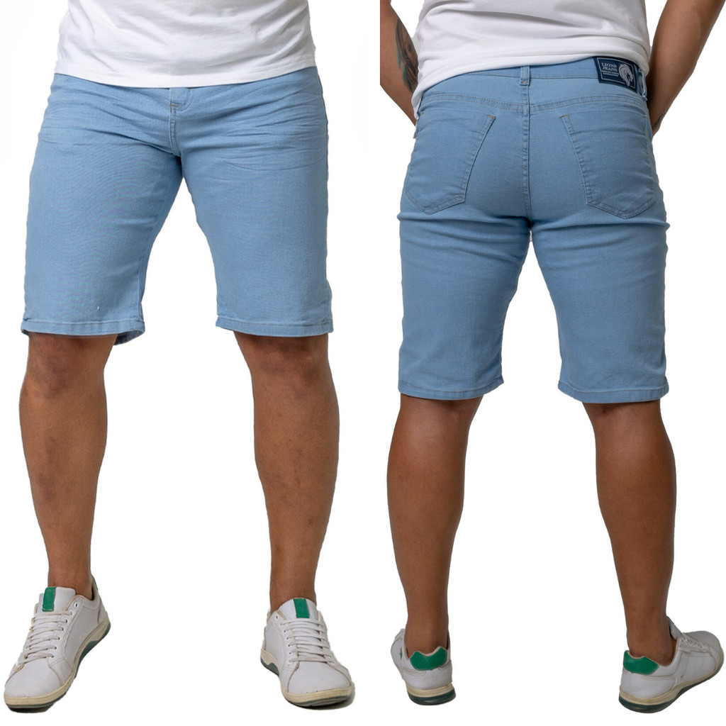 Kit 3 Bermuda Masculina Jeans Com Elastano Preta+ Azul USED+ Azul Claro - Short Jeans Masculino