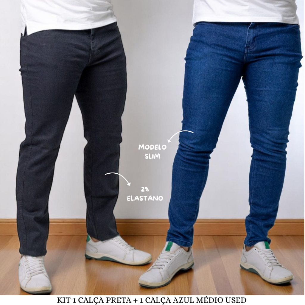KIT 2 Calça Masculina Jeans Slim Lycra Elastano Envio imediato - Jeans Masculino Adulto