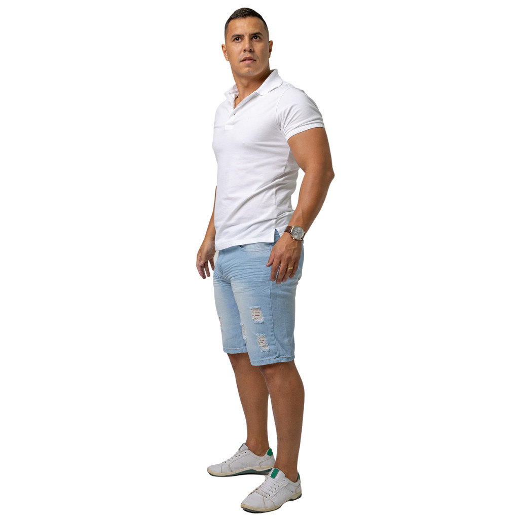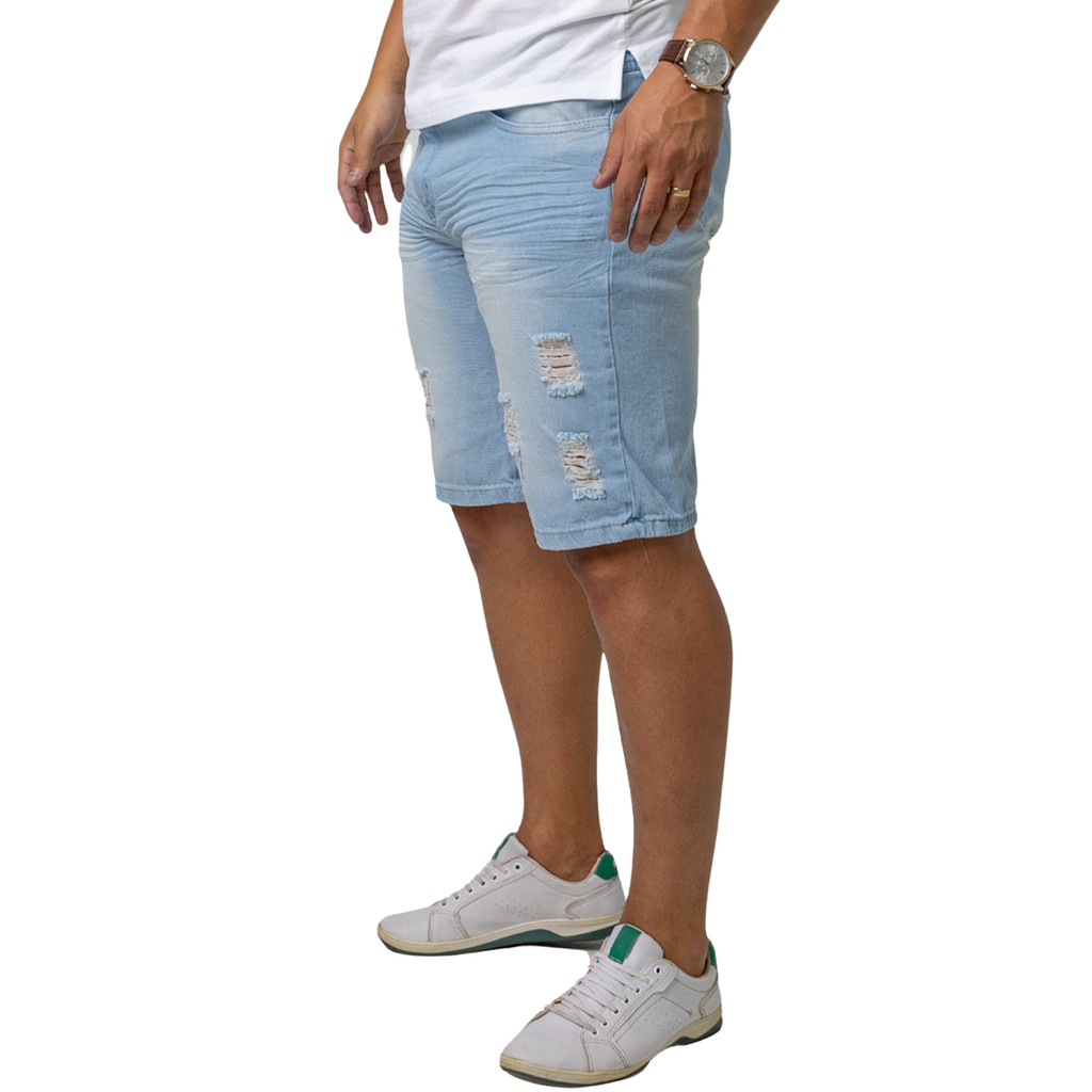 Bermuda Masculina Jeans Clara Rasgada - 100% algodão - Short Jeans Masculino- CARNAVAL