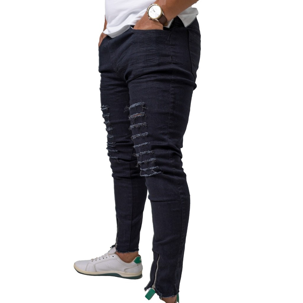 Calça Jeans Preta Masculina Rasgado SKINNY Com Zíper Na Barra - Marca Lions Jeans - Direto Da Fábrica