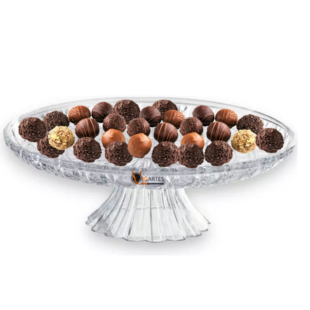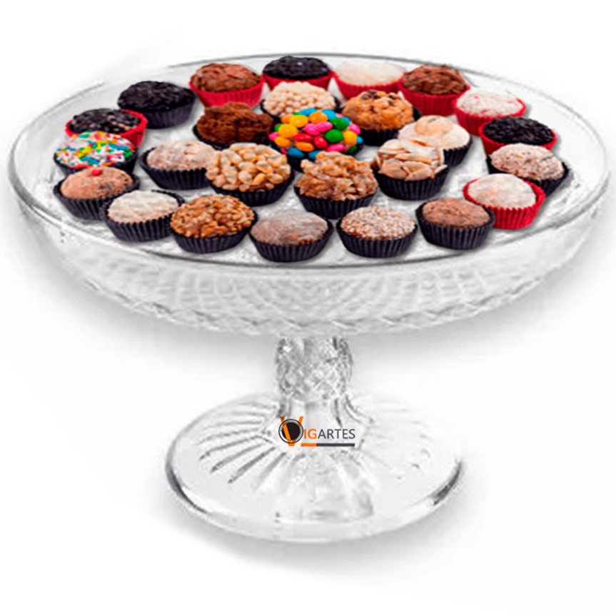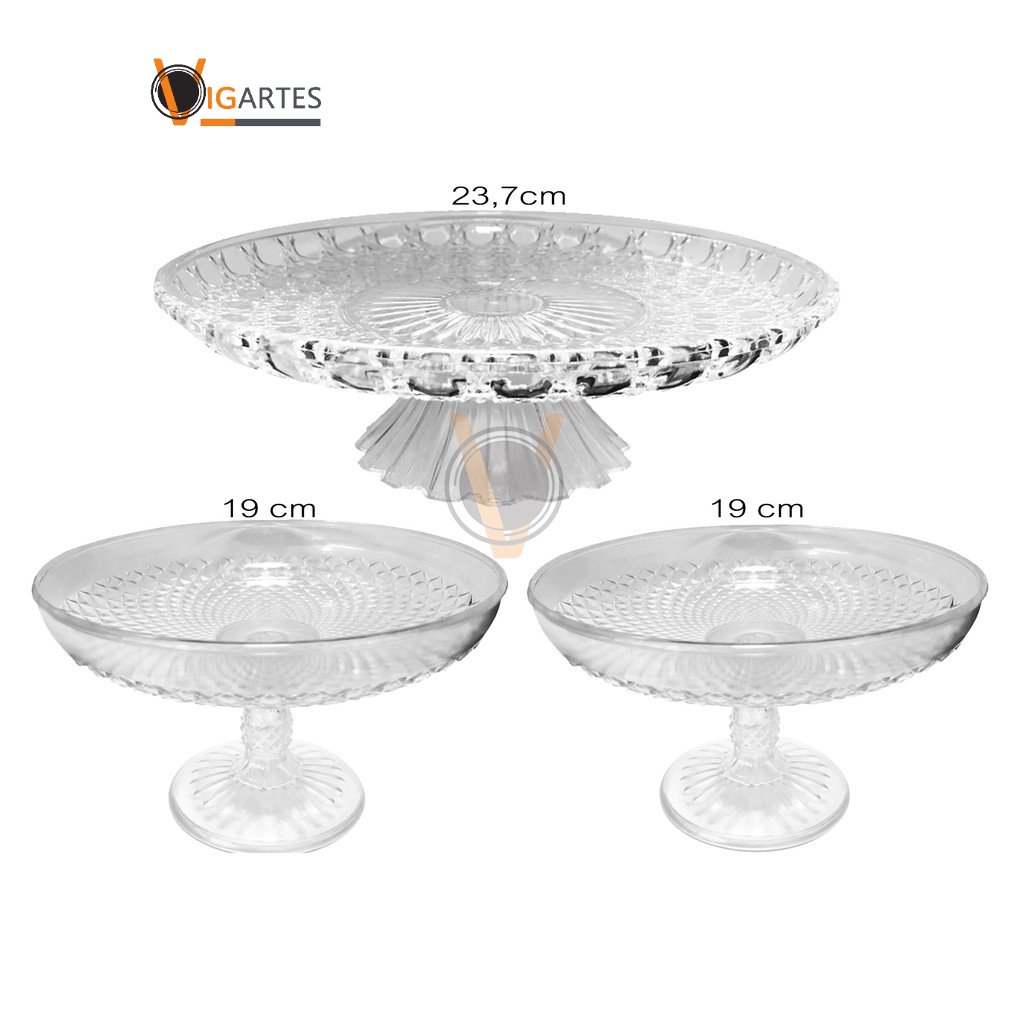 Kit com 1 Boleira Acrílico 23,7 cm + 2 Doceira 19cm , Boleira Lapidada Cristal, Boleira Transparente, Kit de Boleiras