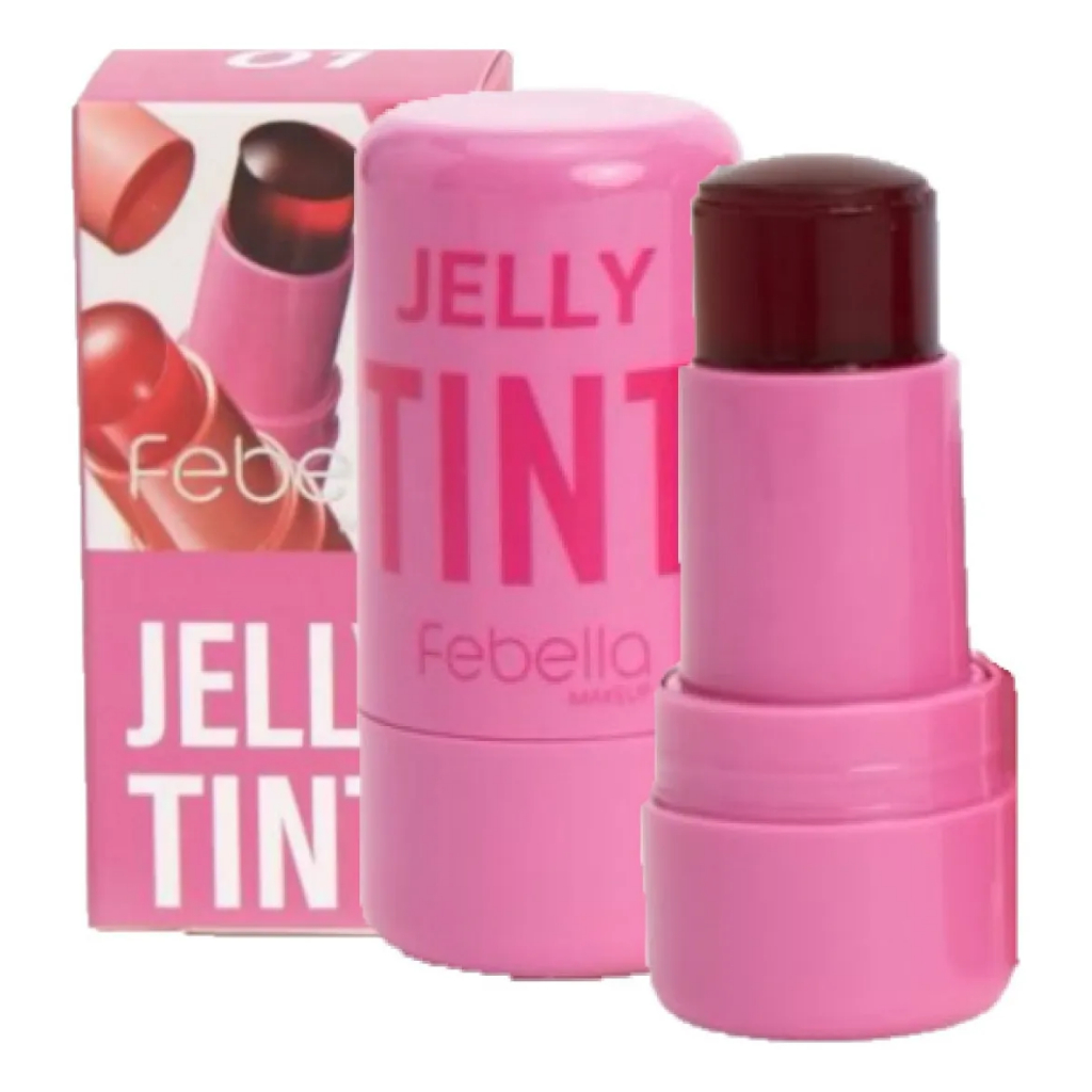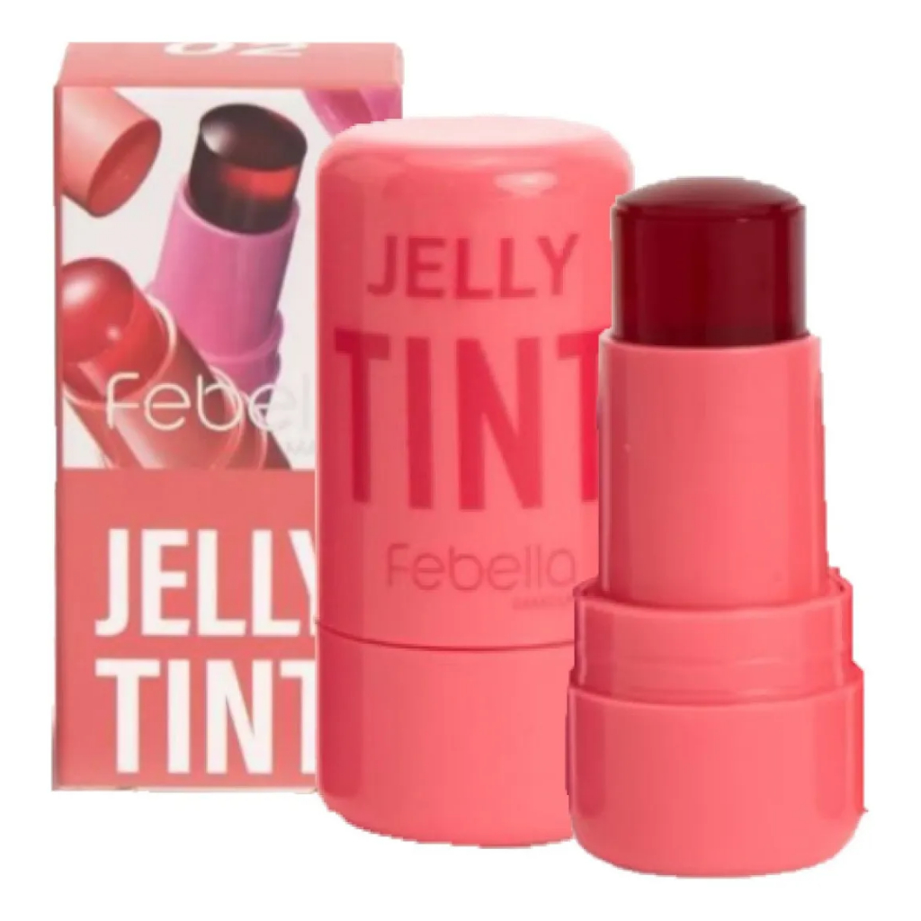 Jelly Tint Lip Stick - Blush e Batom em bastão da Febella - Bem pigmentado e alta fixação - 4 Cores