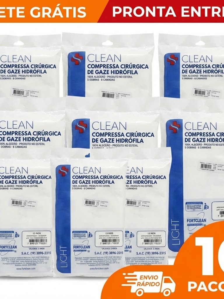 Kit com 10 Pacotes de Compressa de Gaze – 13 Fios | 7,5 x 7,5 cm