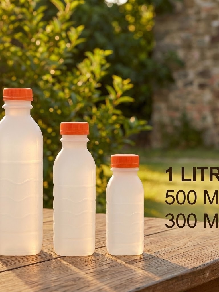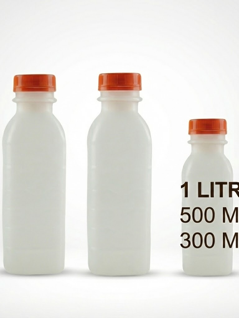 Kit Garrafas PET para Suco 300ml, 500ml e 1 L com Tampa Hermética Ideal para Sucos, DetoxChá Gelado