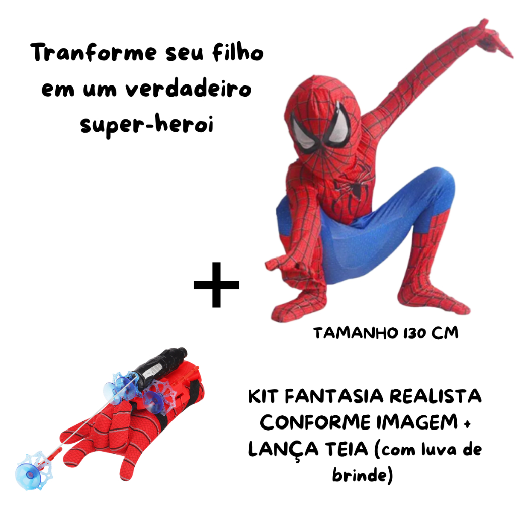 Fantasia Infantil Homem Aranha Spider Man Macacao Realista Super Heróis Marvel Luxo Carnaval