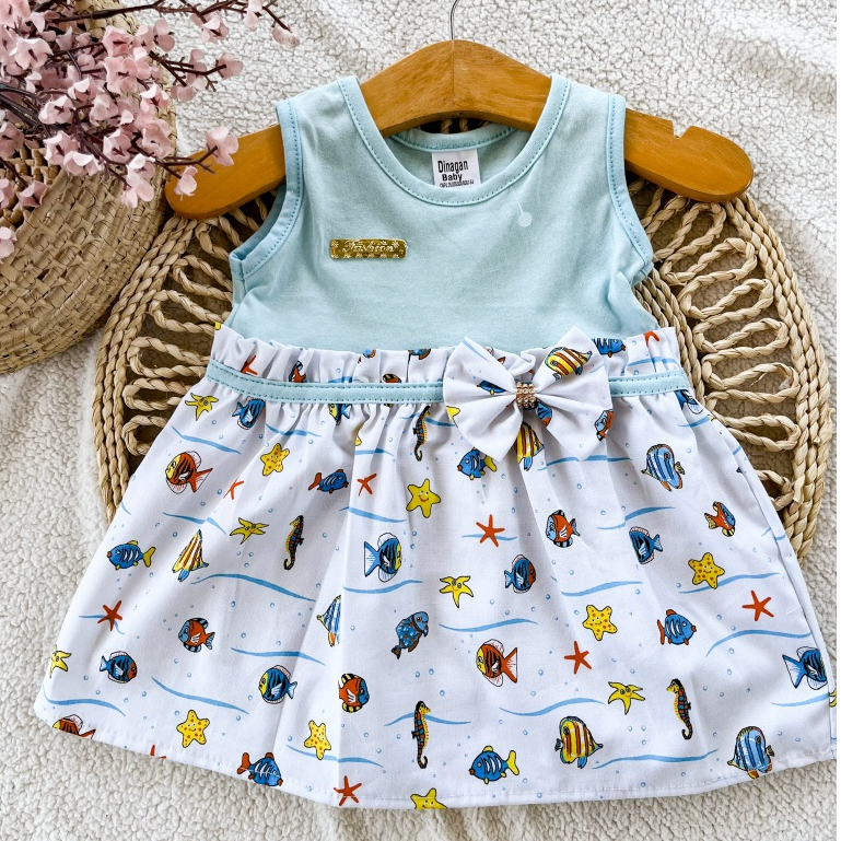 Vestido de Bebe com Pinças e Laço Helena Roupas para Bebe Menina Roupa Infantil Feminino