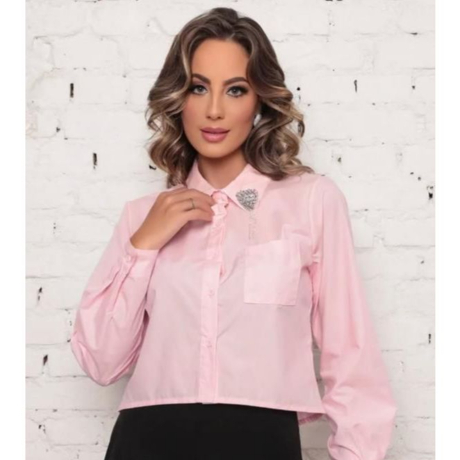 Camisa Cropped Social Manga Longa Pedraria Com Bolso feminina Blogueira 2025