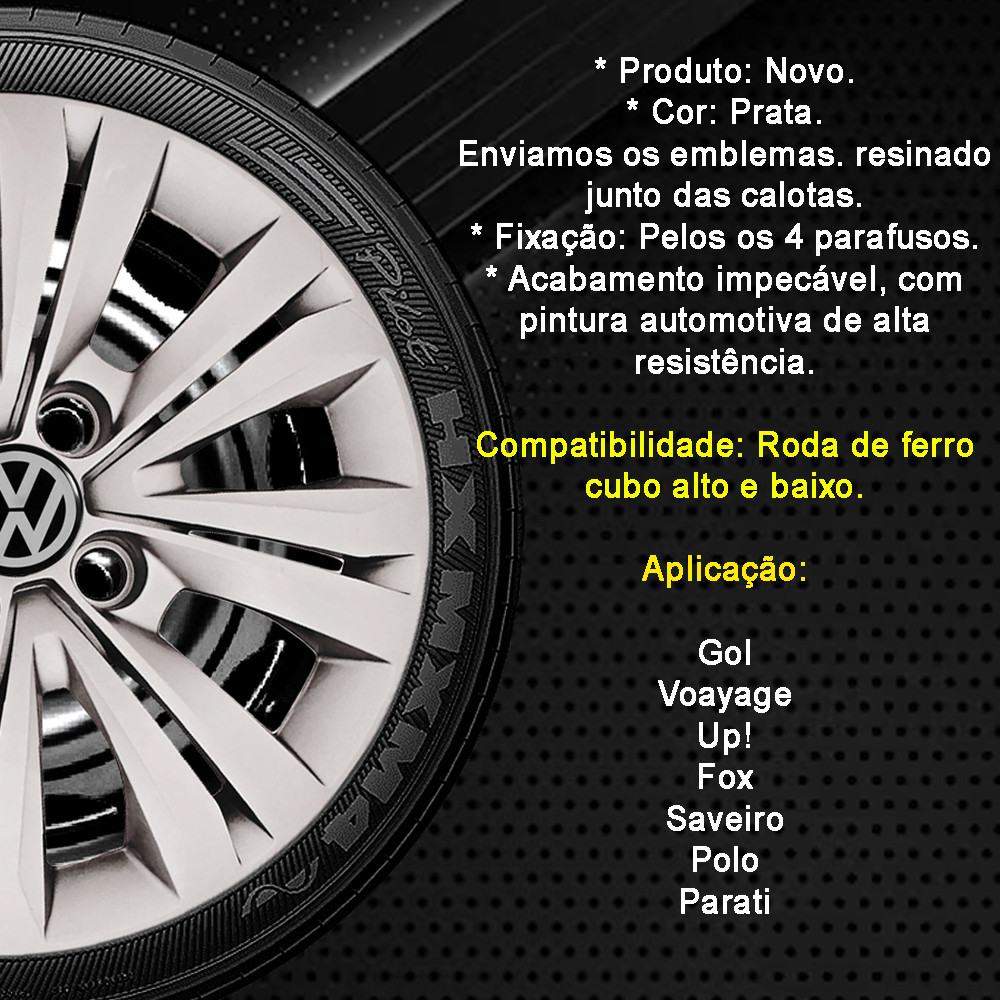 Jogo 4 Calota Aro 13/14/15 Prata Gol Saveiro Voyage G4 G5 G6 G7