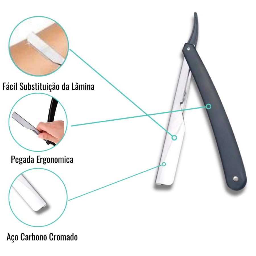 Navalha de Barbear Profissional Lâmina Navalhete Acabamento Sobrancelha Barba Barbeiro Aço Inox