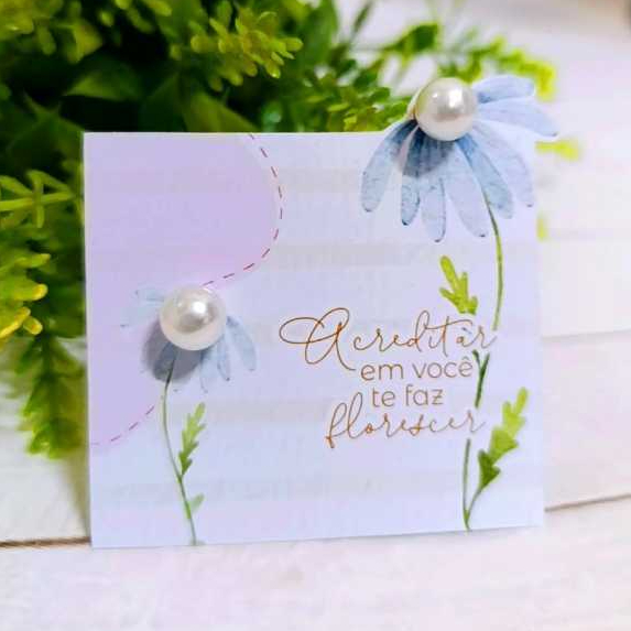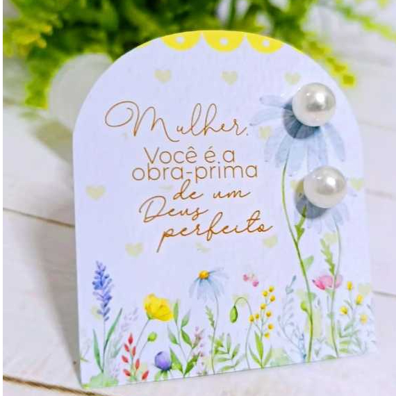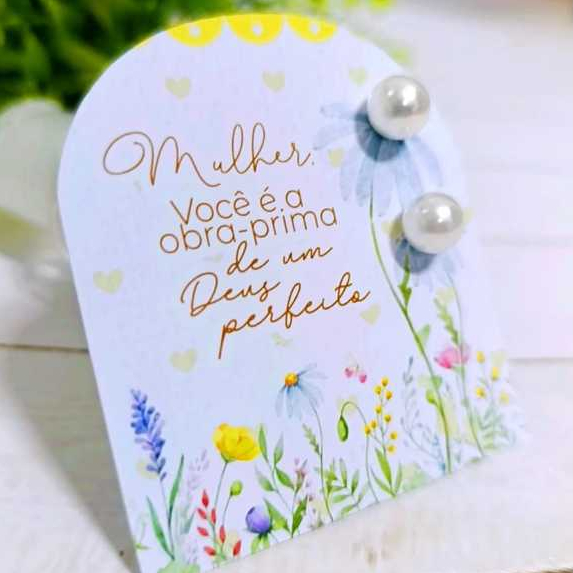 Brinco de Pérola com Tag Dia da Mulher – Lembrancinha Feminina