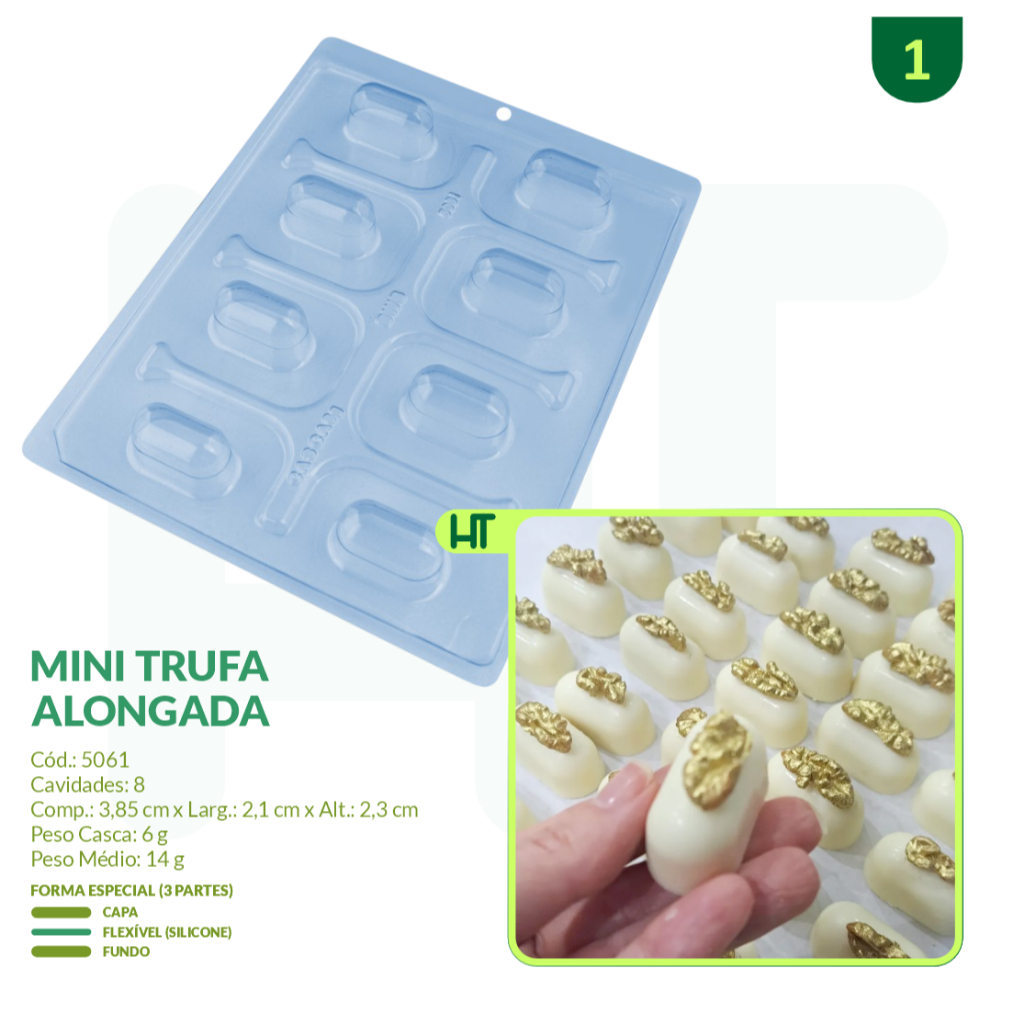 Forma para Chocolate - Mini Trufa Alongada BWB 5061 - Mini Camafeu - Doces Finos