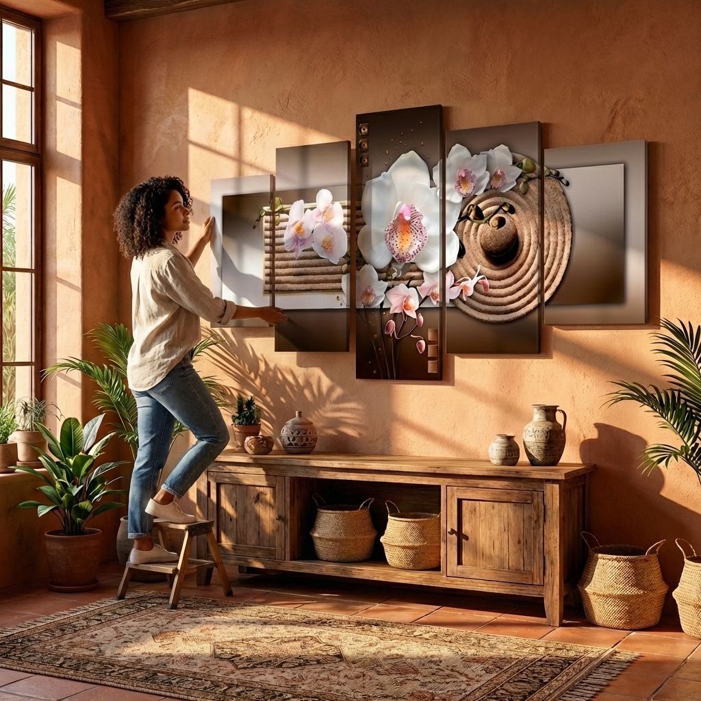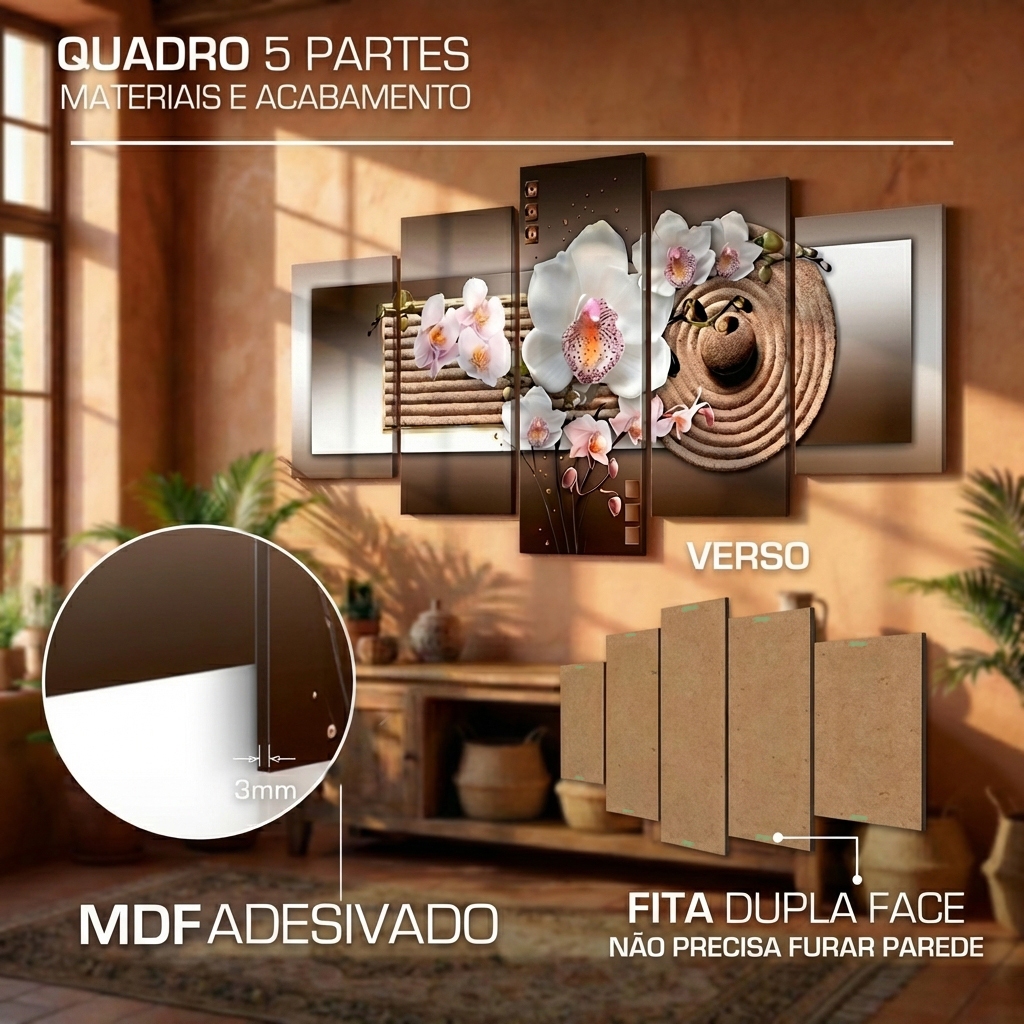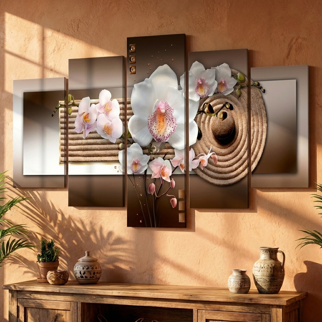 Quadro Decorativo Orquídea Branca Fundo Abstrato Texturizado Marrom 03 Lindo