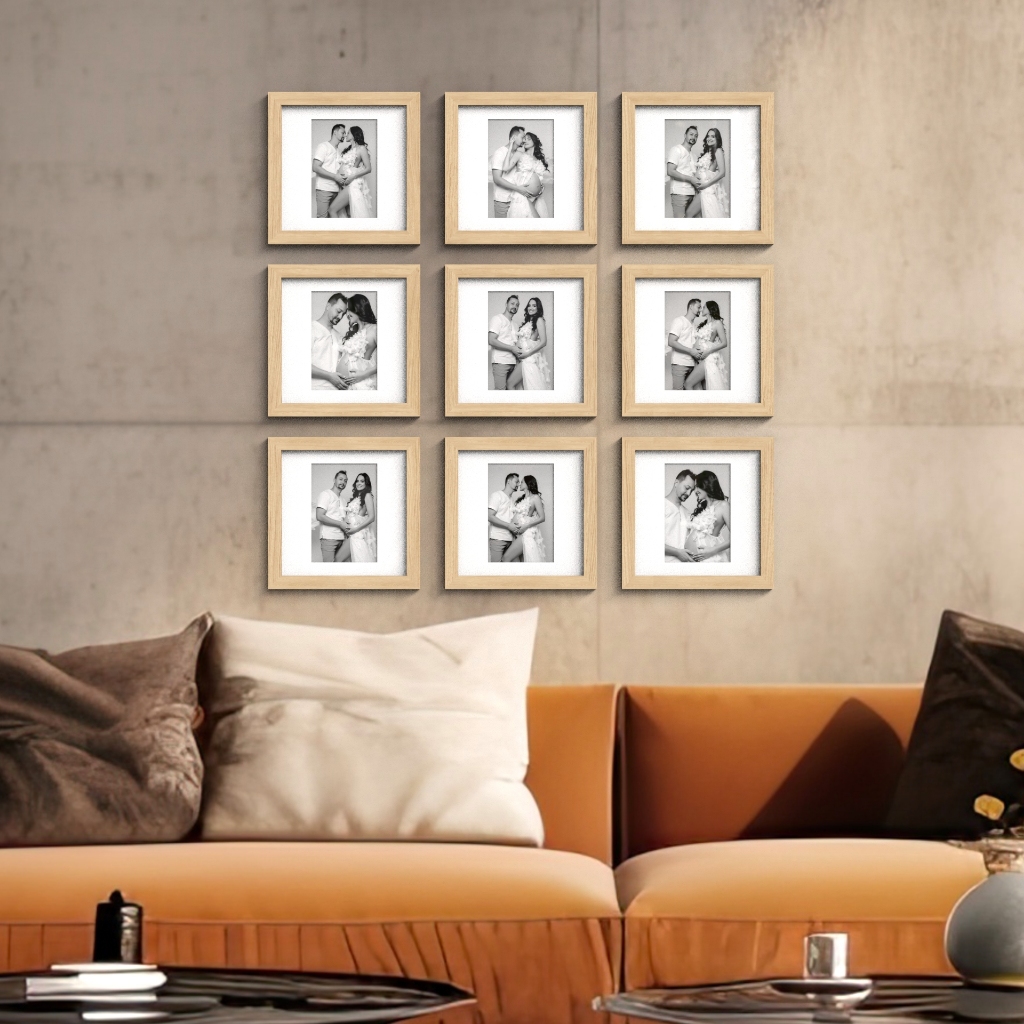 kit 9 quadros decorativos moldura fotográfica 23x23cm moldura com paspatur foto 10x15