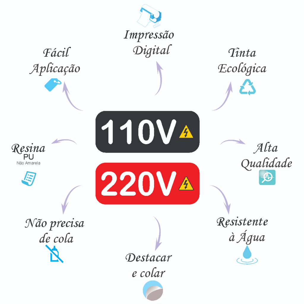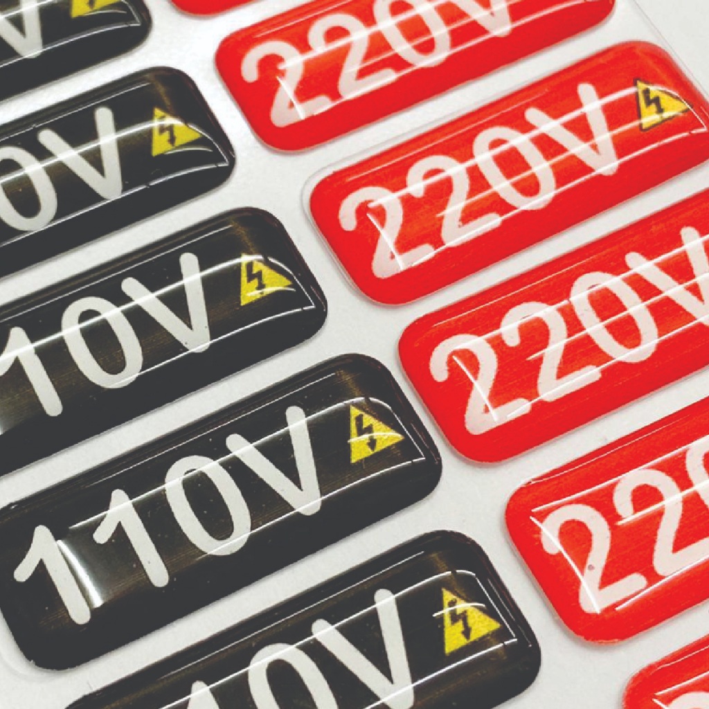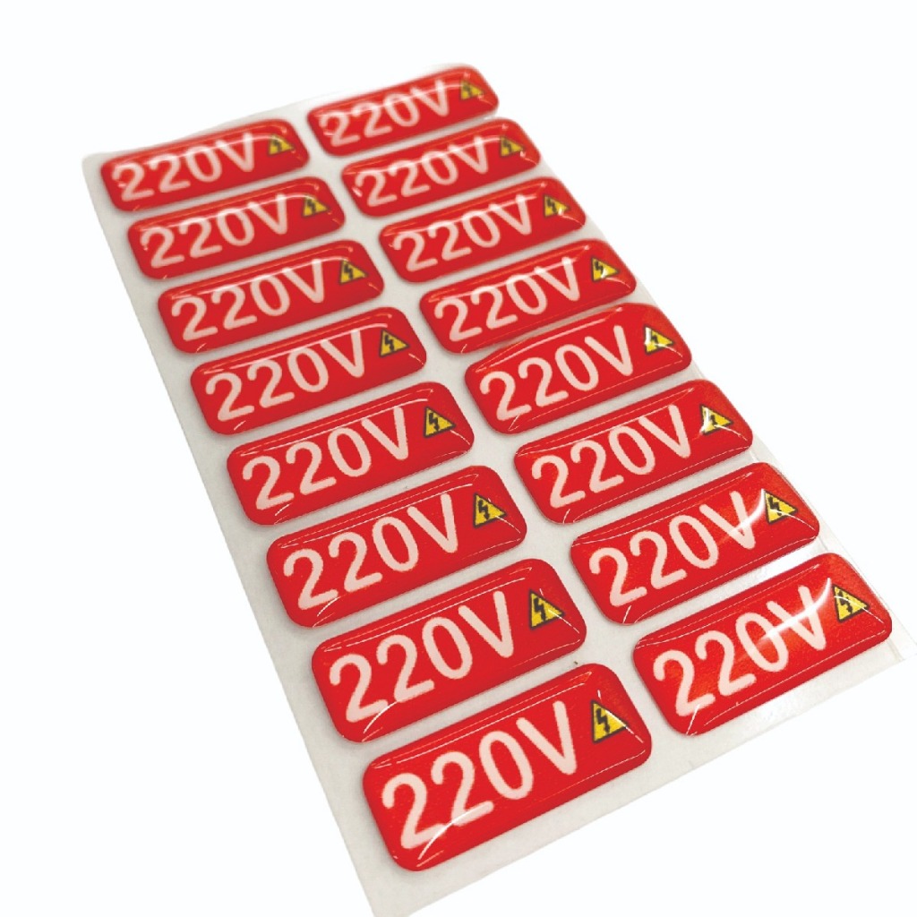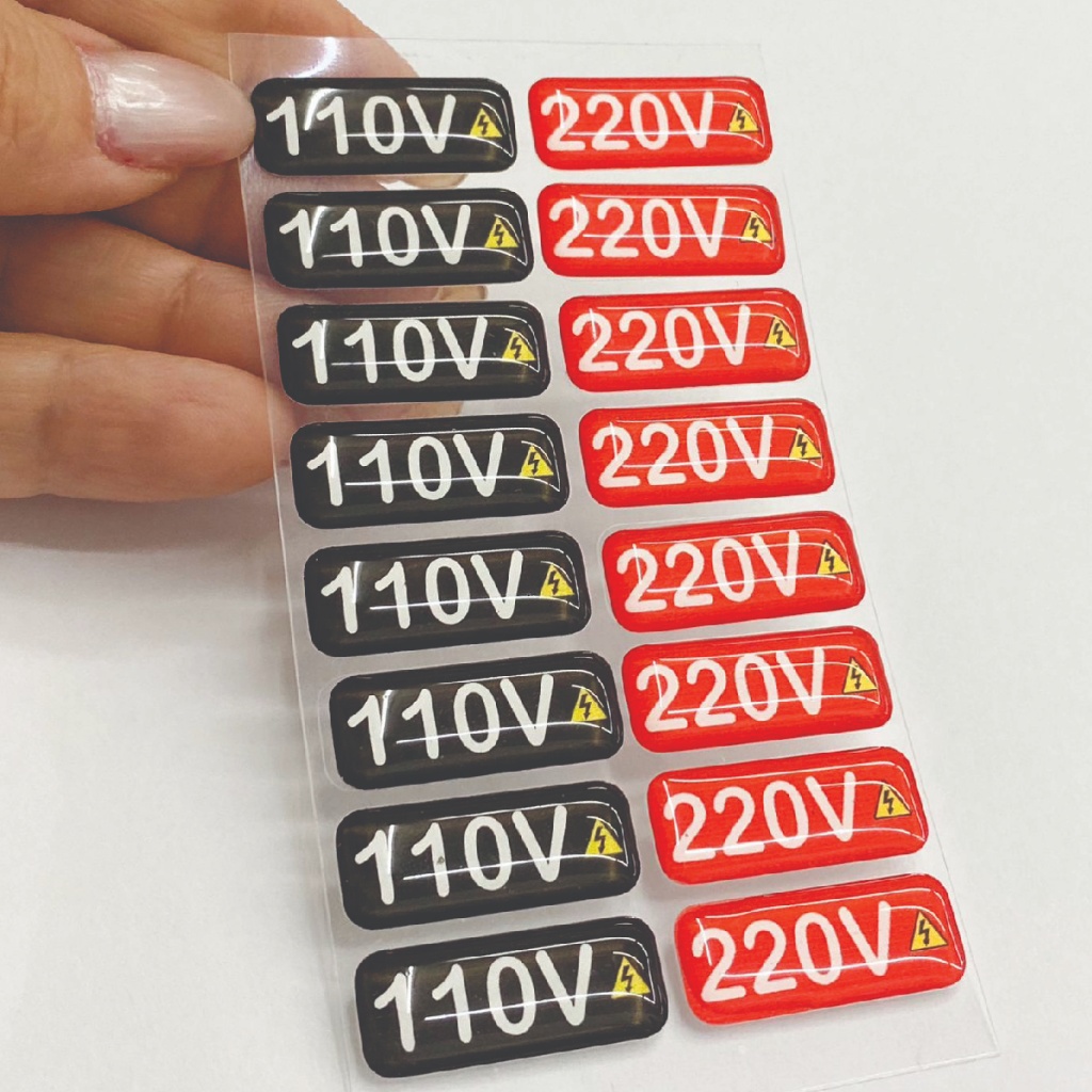 32 Unidades Etiqueta Adesiva Resinada PU Identificador de Voltagem 110V/220V Tomadas