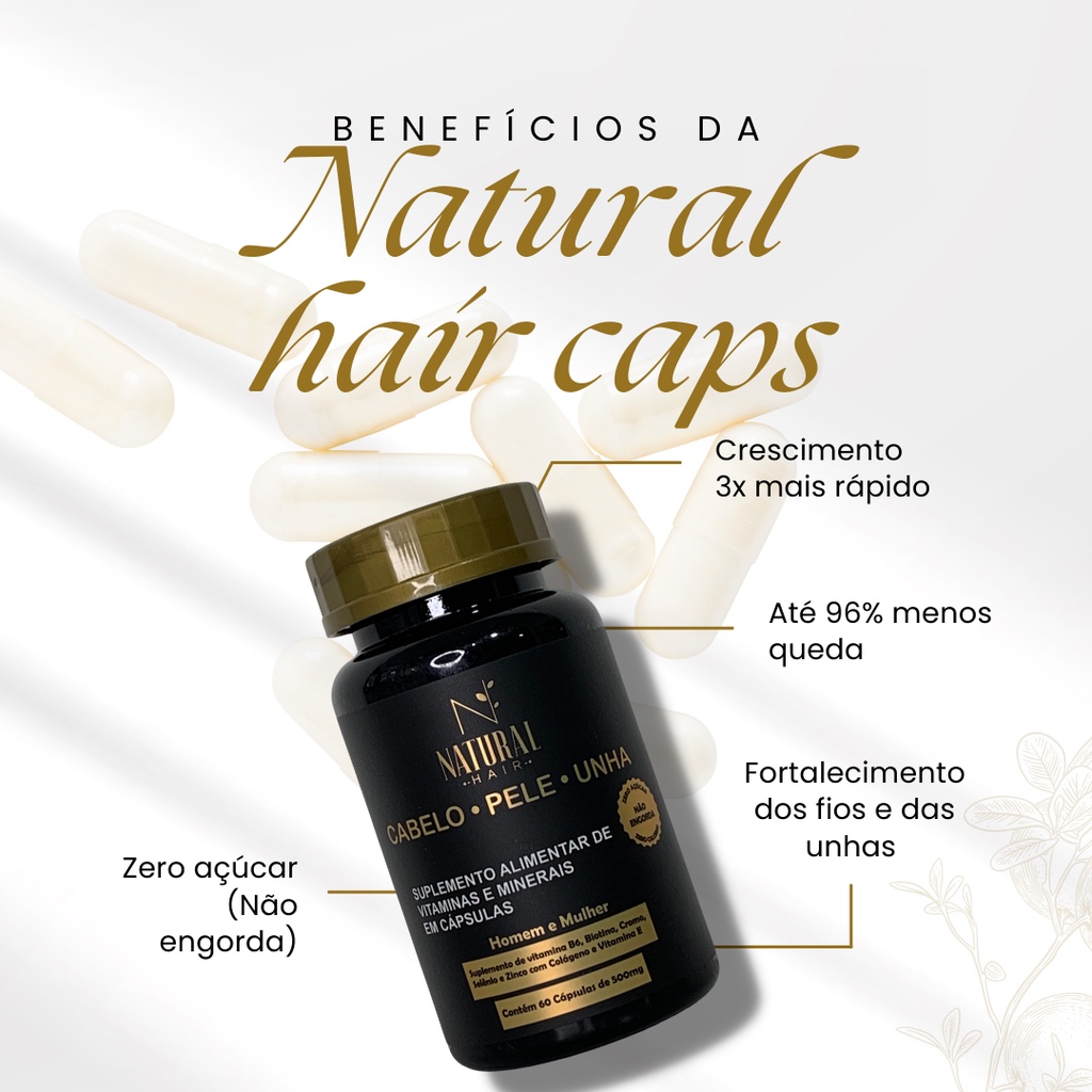 Vitamina para crescimento capilar e combate a queda Natural Hair caps c/60cps