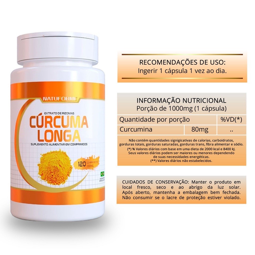 Cúrcuma Longa 120 Cápsulas Açafrão da Terra Antioxidante Natural