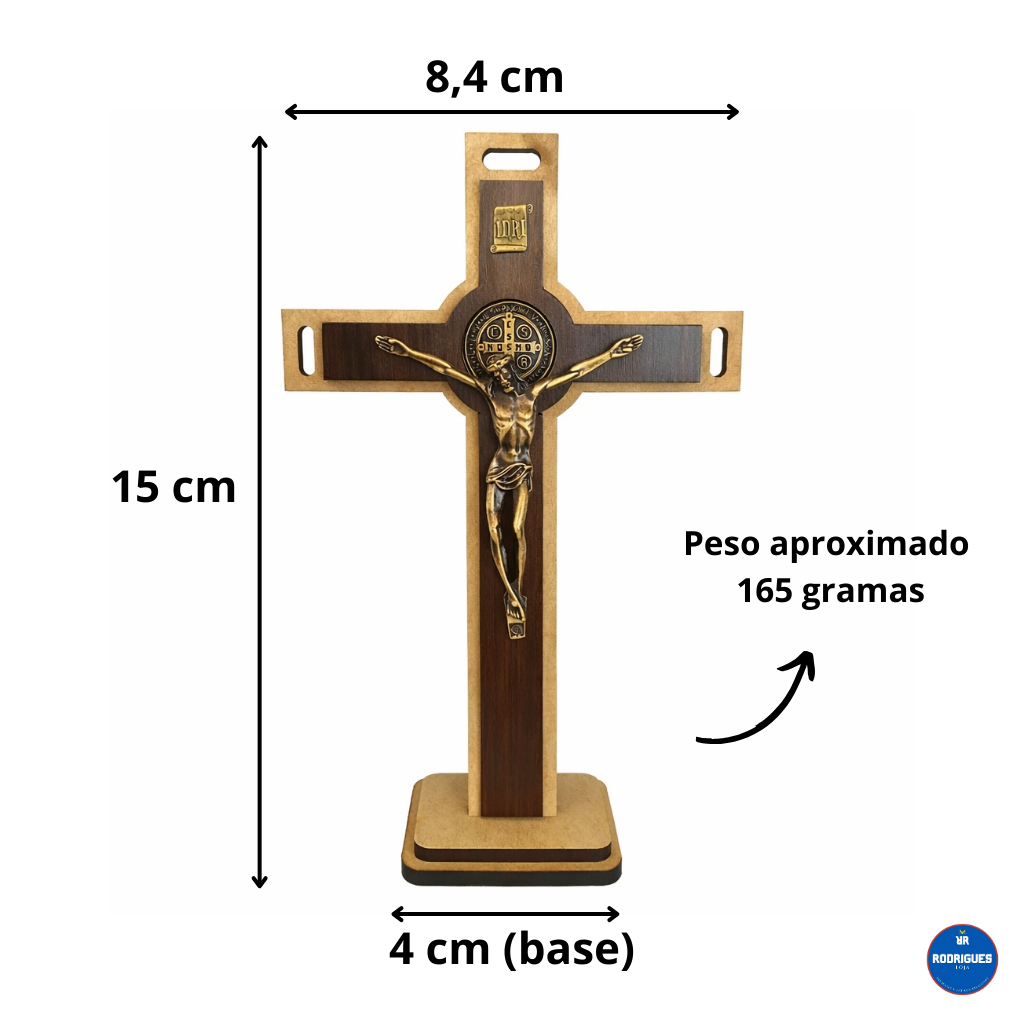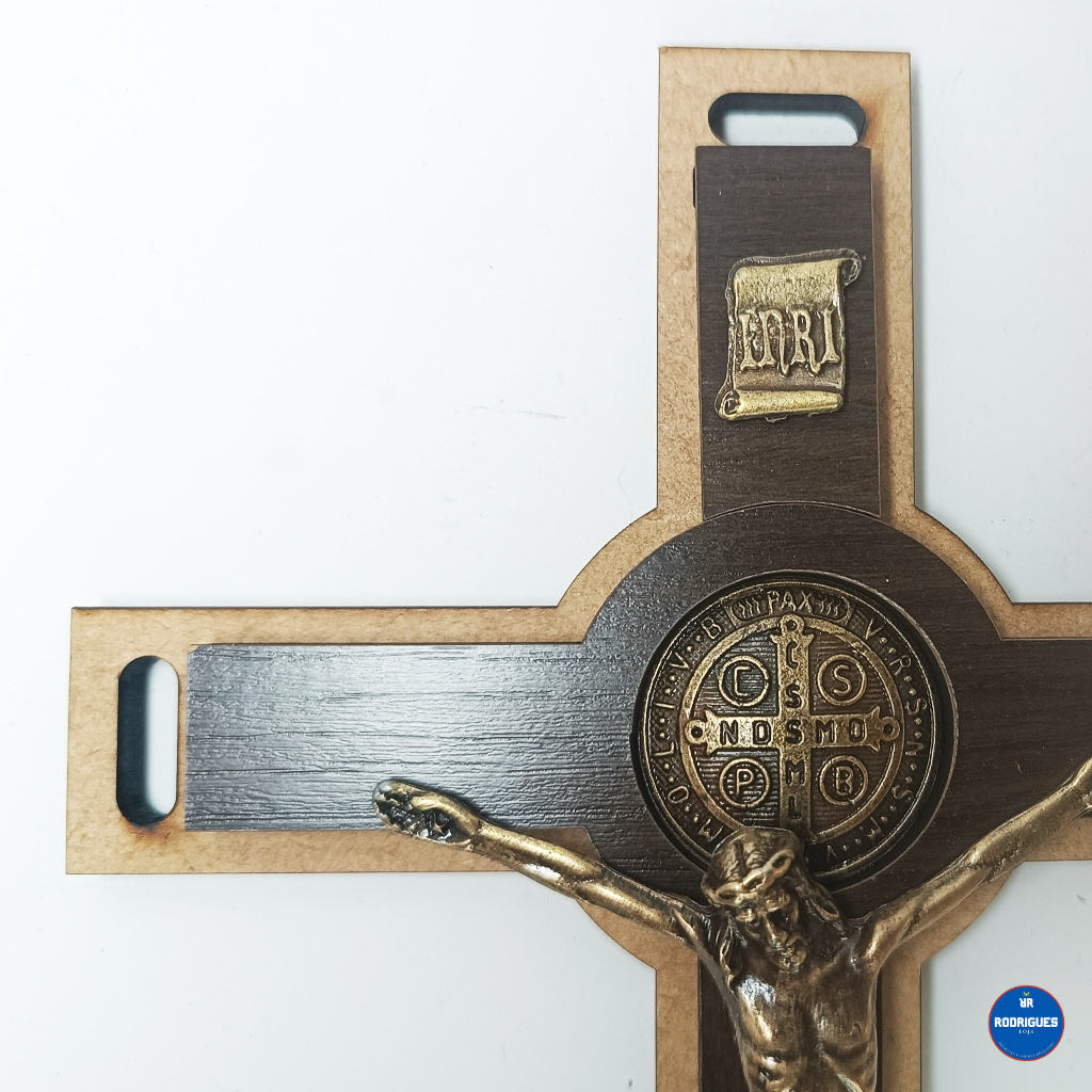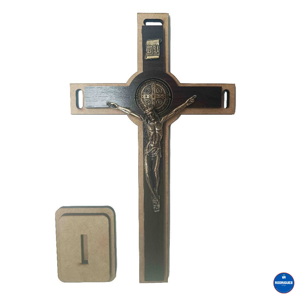 Cruz Crucifixo Madeira Metal 28 cm Parede Mesa Medalha Sao Bento