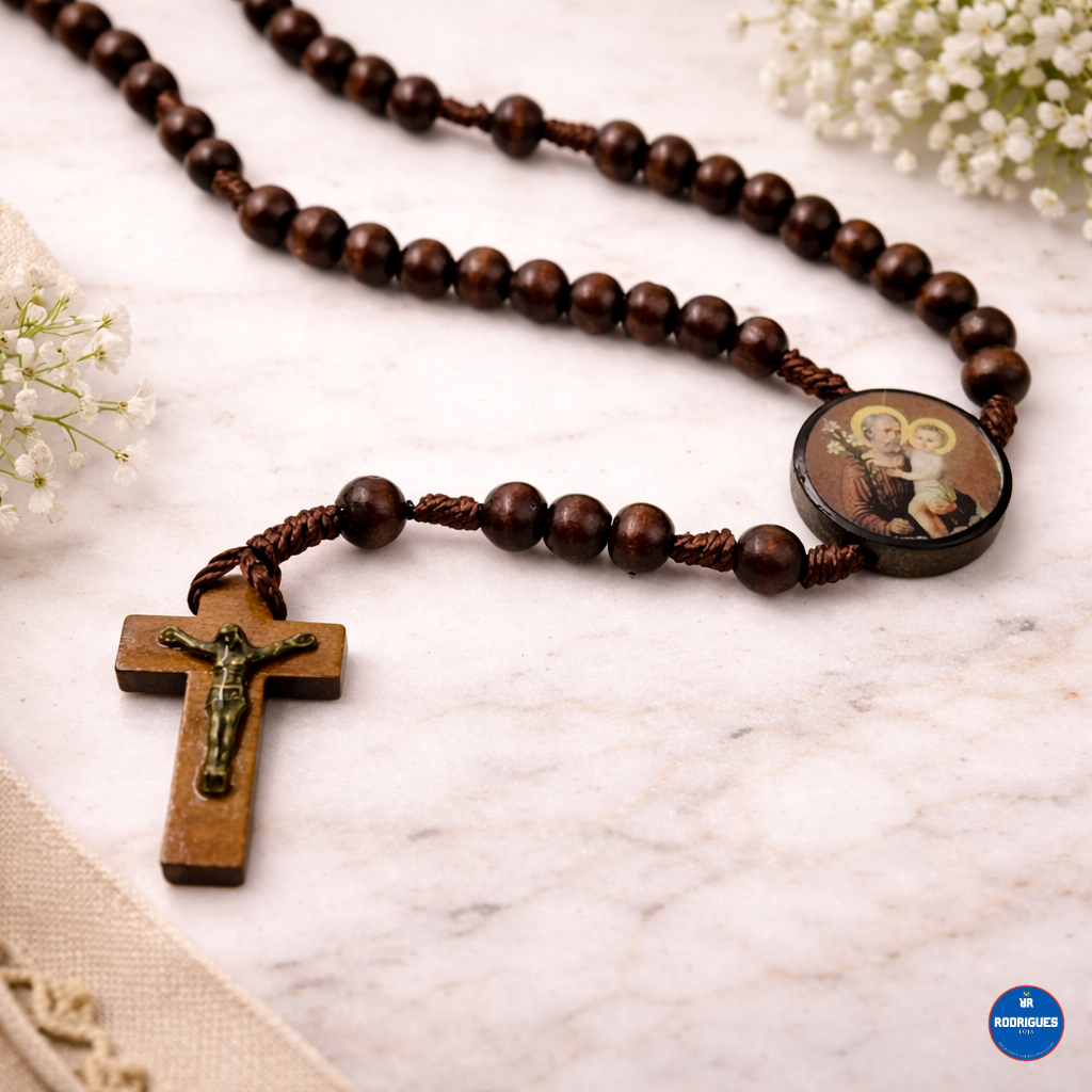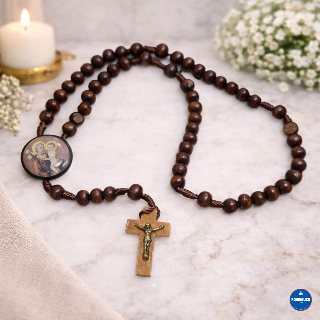 Kit com 2 Peças de Terço São José em Madeira 35 cm