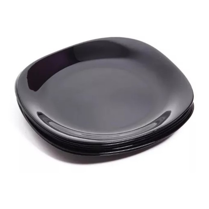 Jogo De Pratos De Sobremesa Quadrado Original Glass C/ 6 Preto 21,5cm 23029