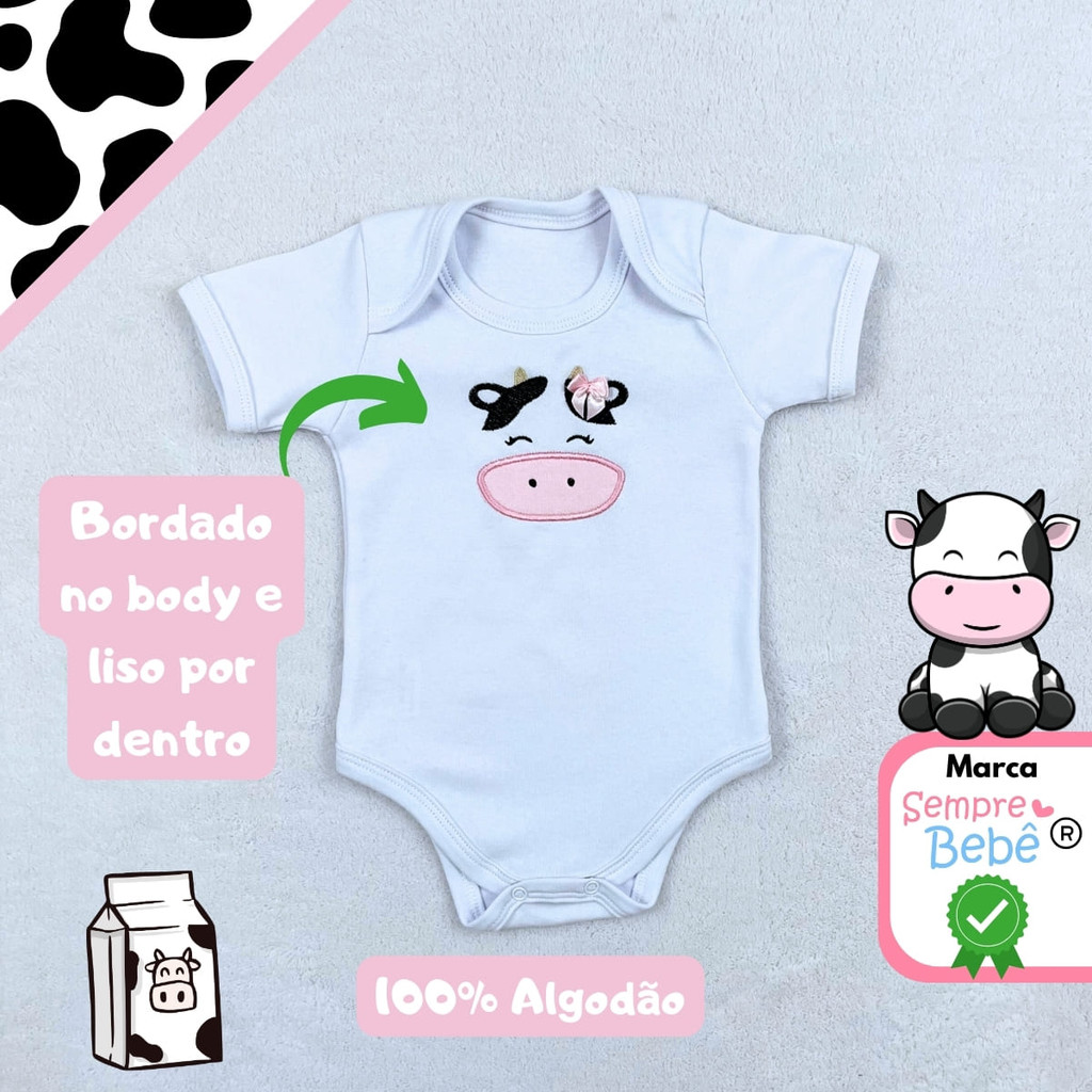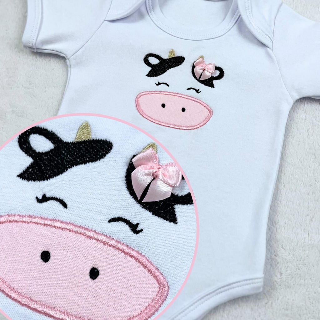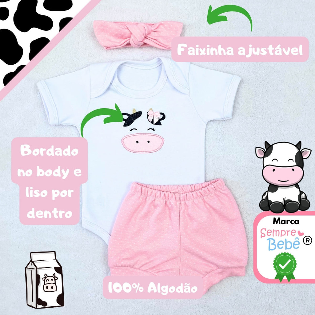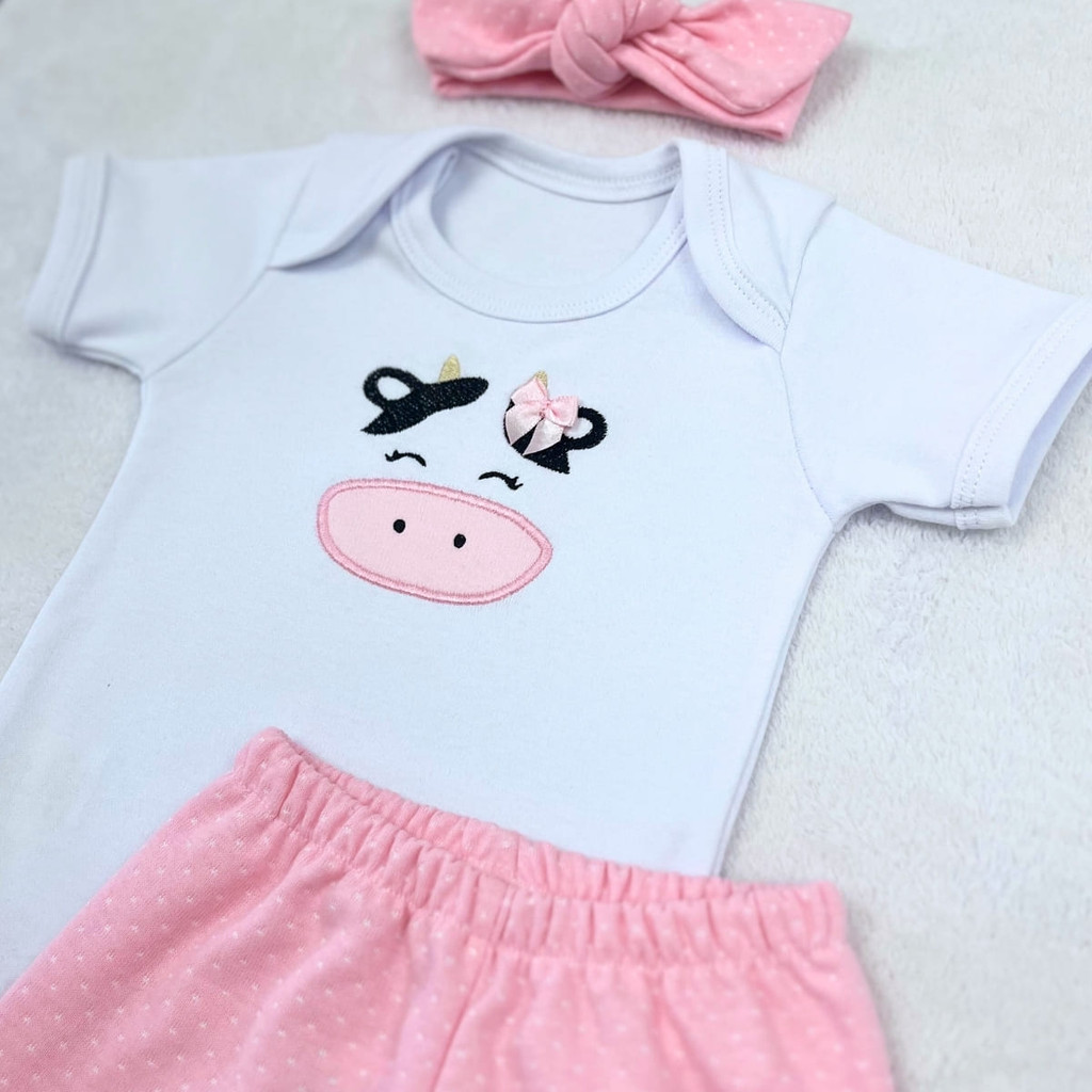 Conjunto Roupa Bebê Menina Vaquinha Vaca Roupinha Conjuntinho Temático Mêsversário Personagem Fantasia SB24607