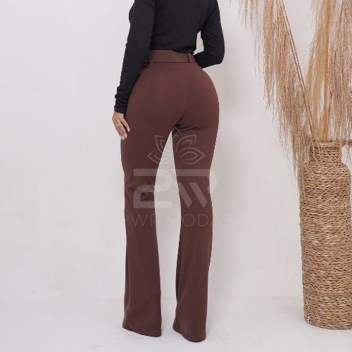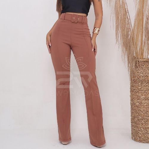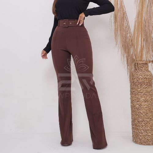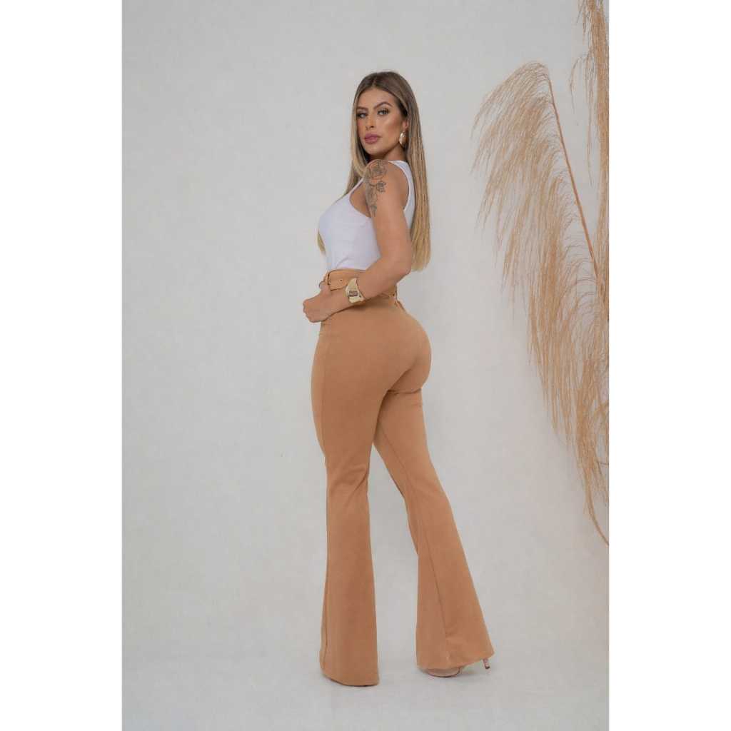 Calça Flare Bailarina Boca de Sino Feminina Com Cinto Grátis Cintura Alta Linda