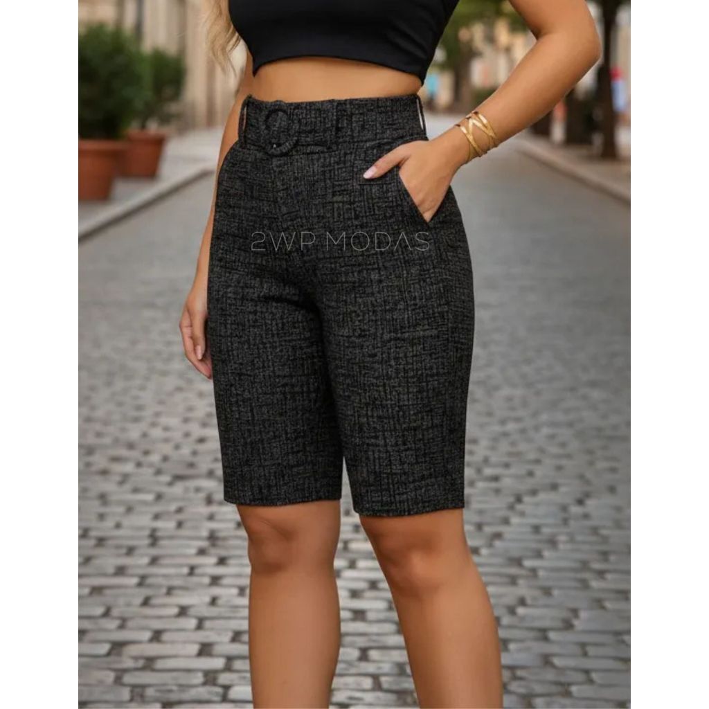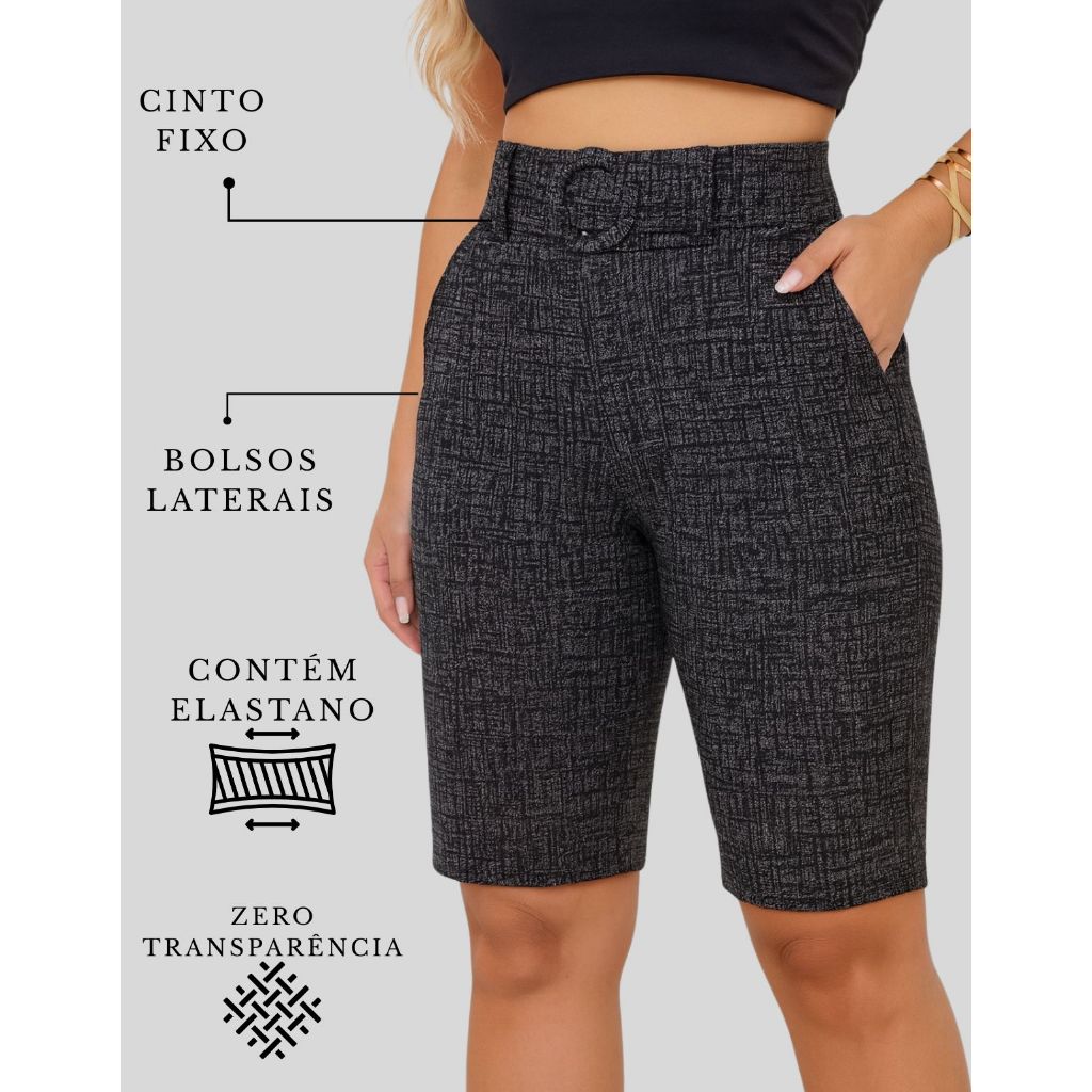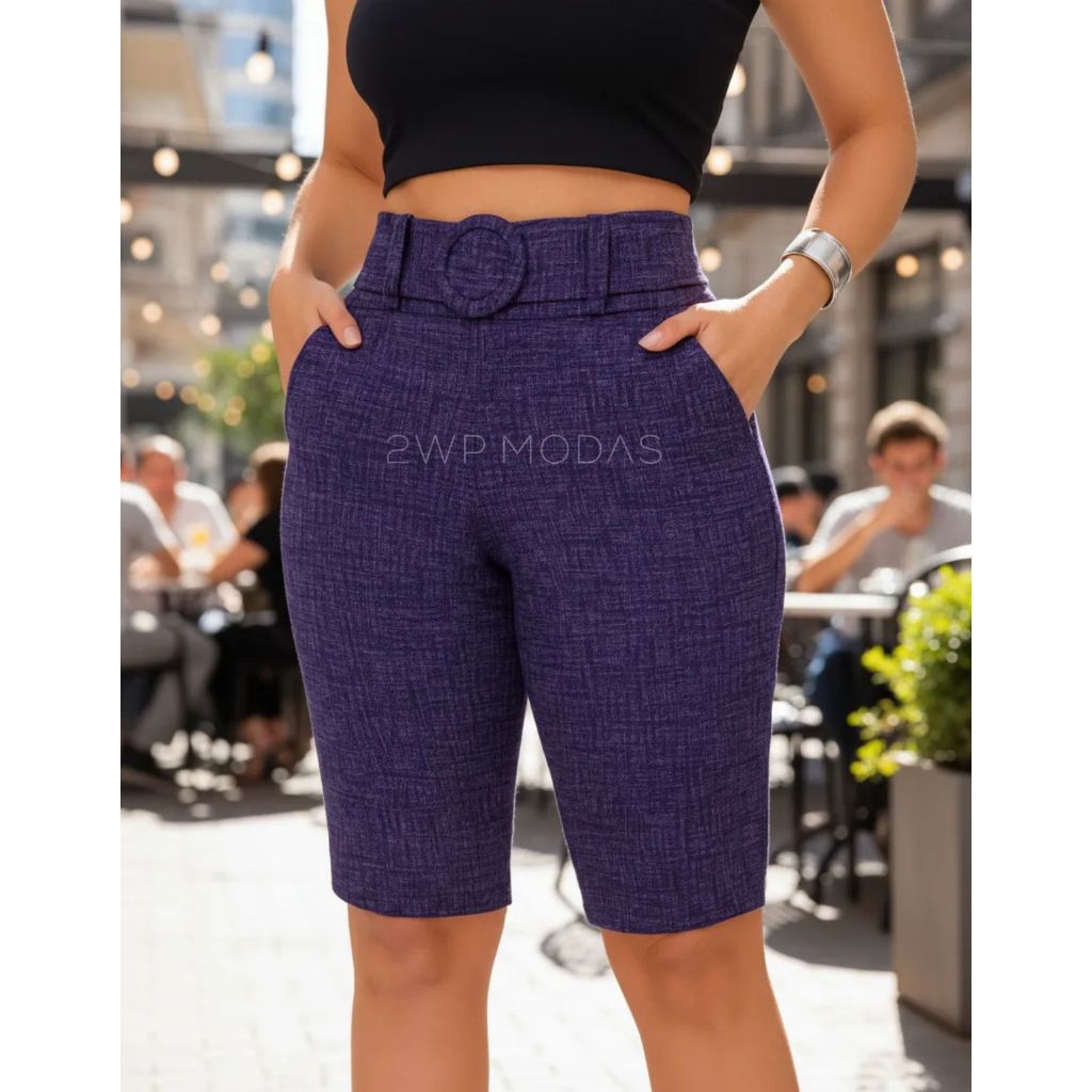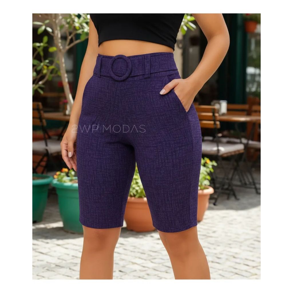Bermuda Feminina Social Alfaiataria Linho Cinto e Bolsos Laterais – P-GG