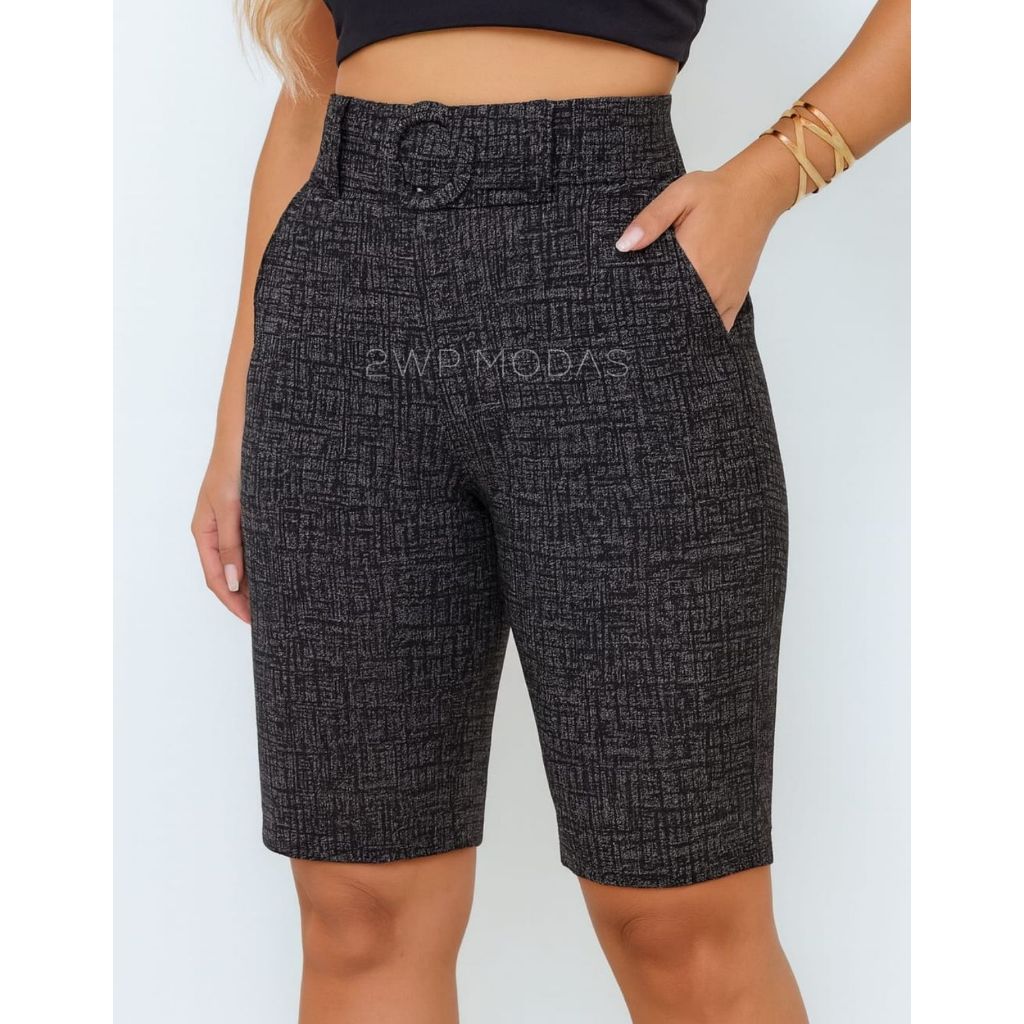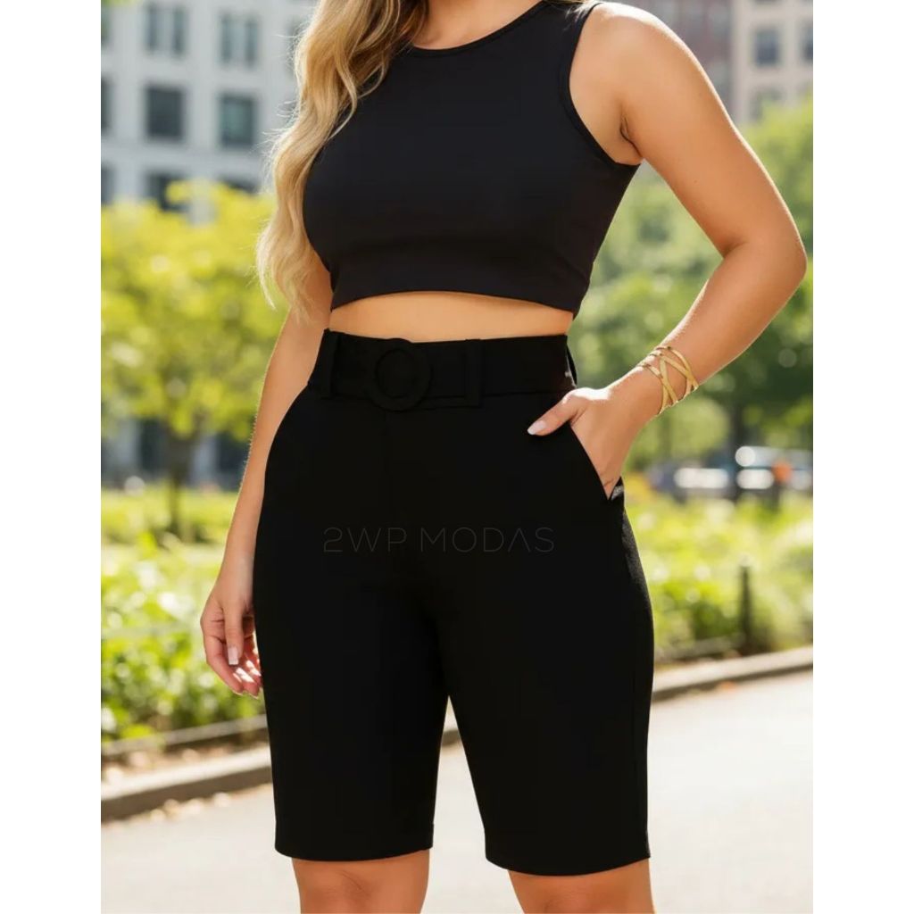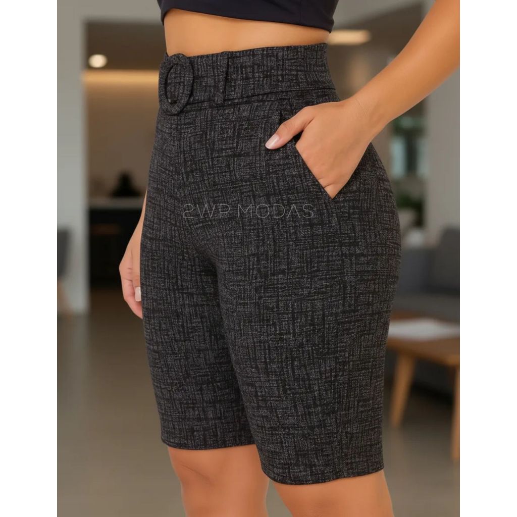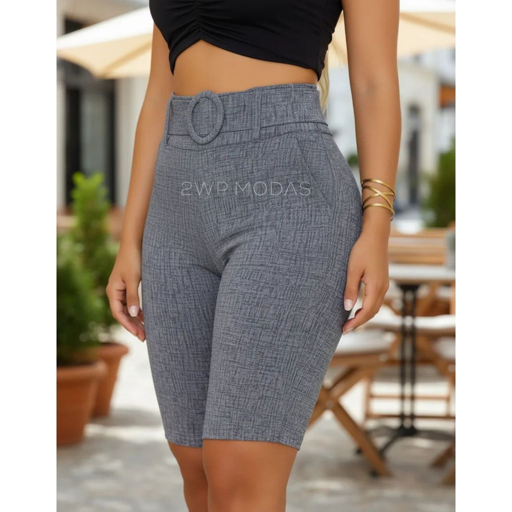 Bermuda Feminina Social Alfaiataria Linho Cinto e Bolsos Laterais – P-GG