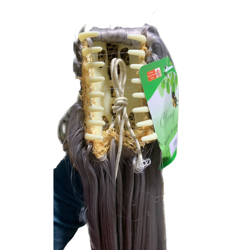 RABO DE CAVALO Cinza Grisalho / Rabo de cavalo com Presilha - Liso e Ondulado - 65cm a 70cm Orgânico