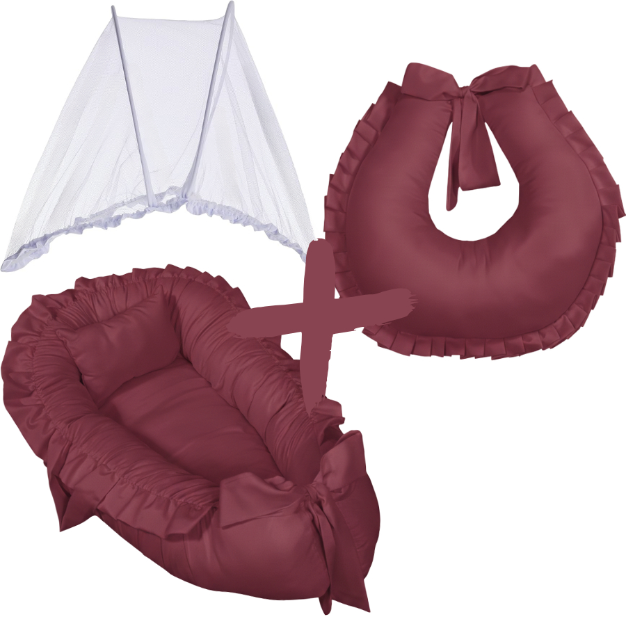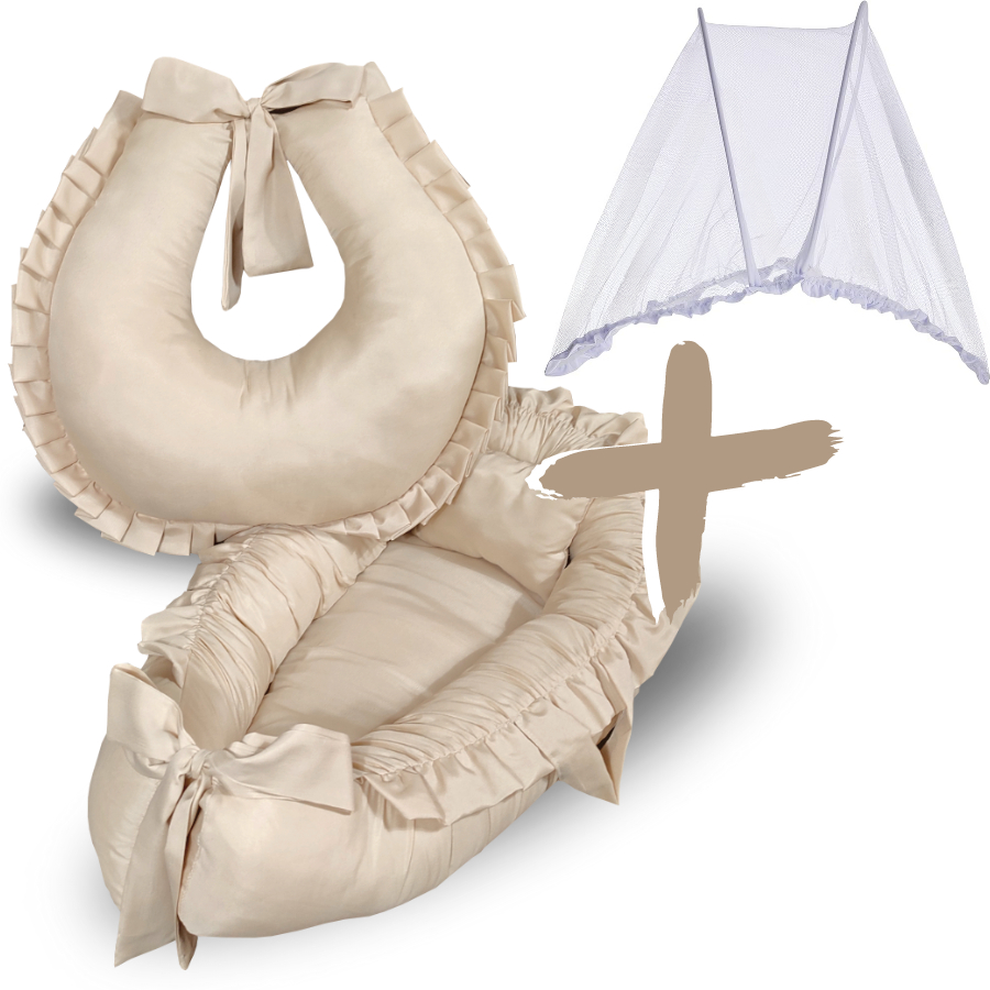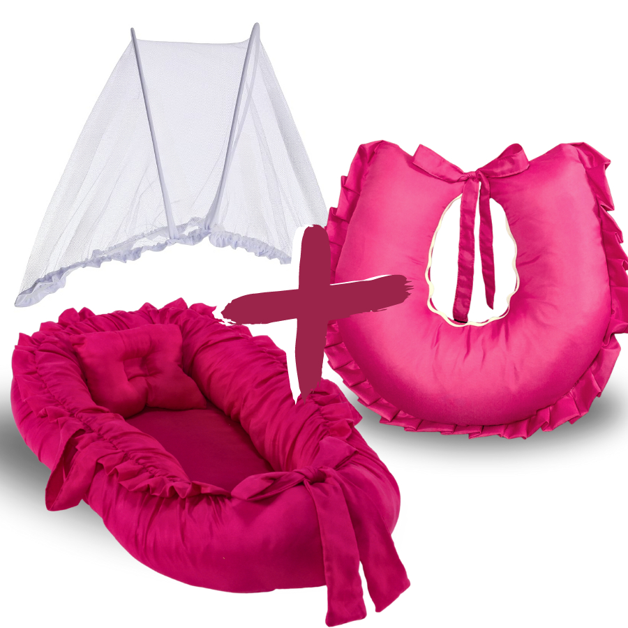 Kit Ninho Redutor de Berço Bebe Micropercal + Almofada Amamentação + Mosquiteiro Portátil Removível