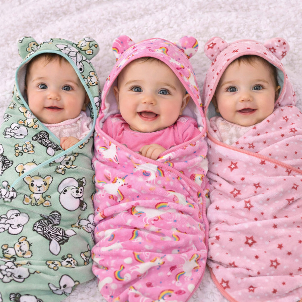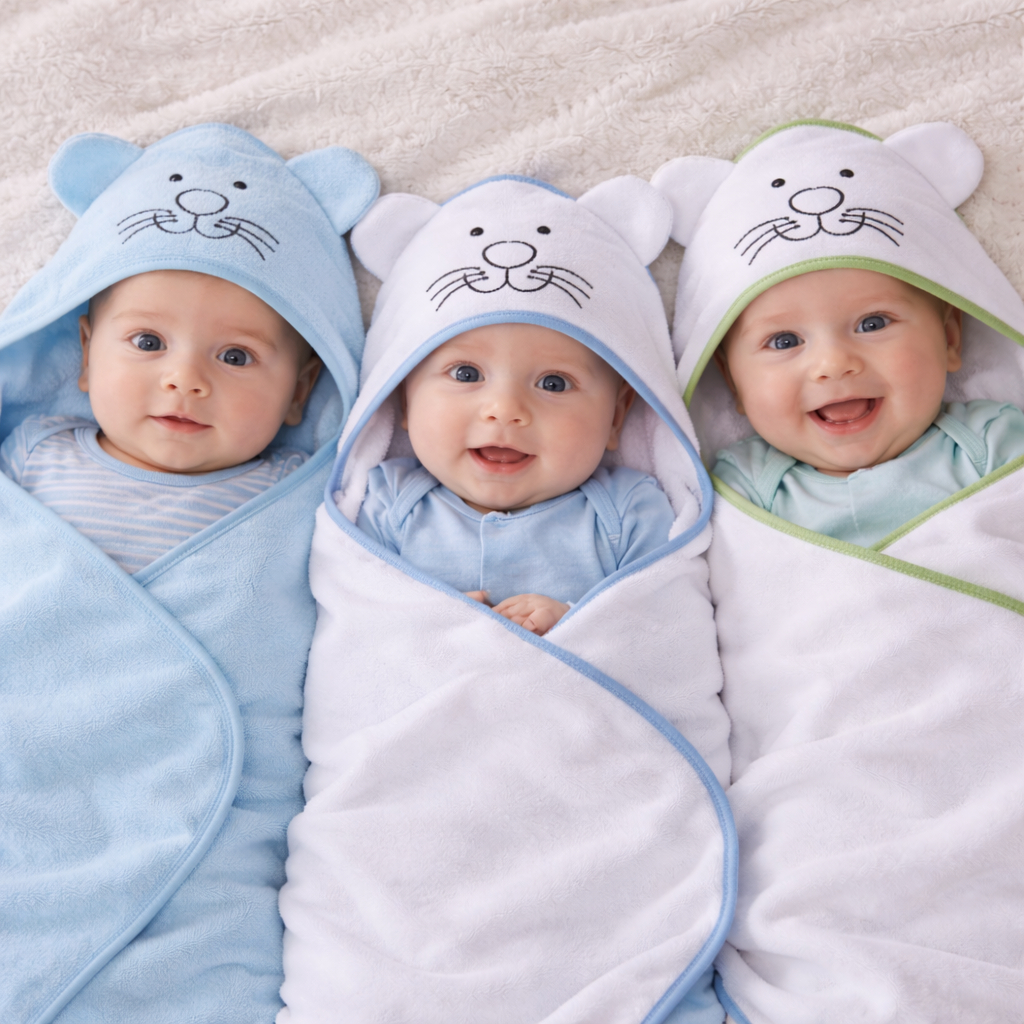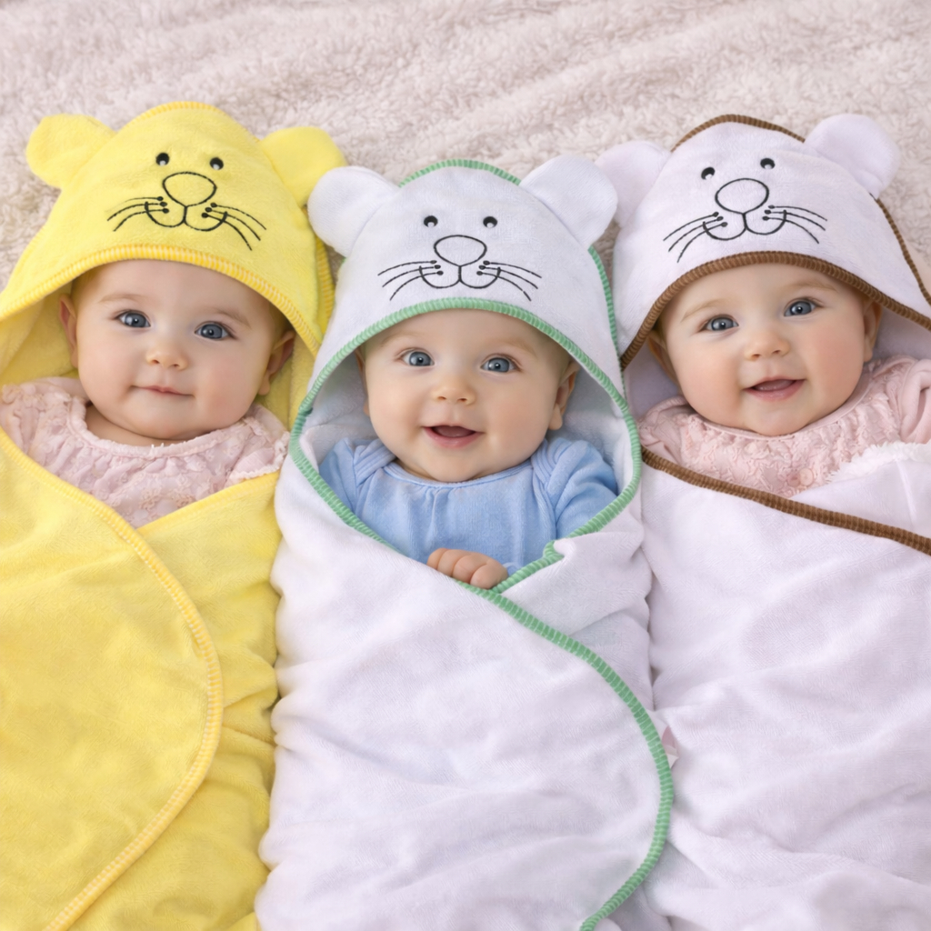 Toalha de Banho Bebe Kit 3 Toalhas Bordada com Capuz Forrado em Tecido Fralda 100% Algodão