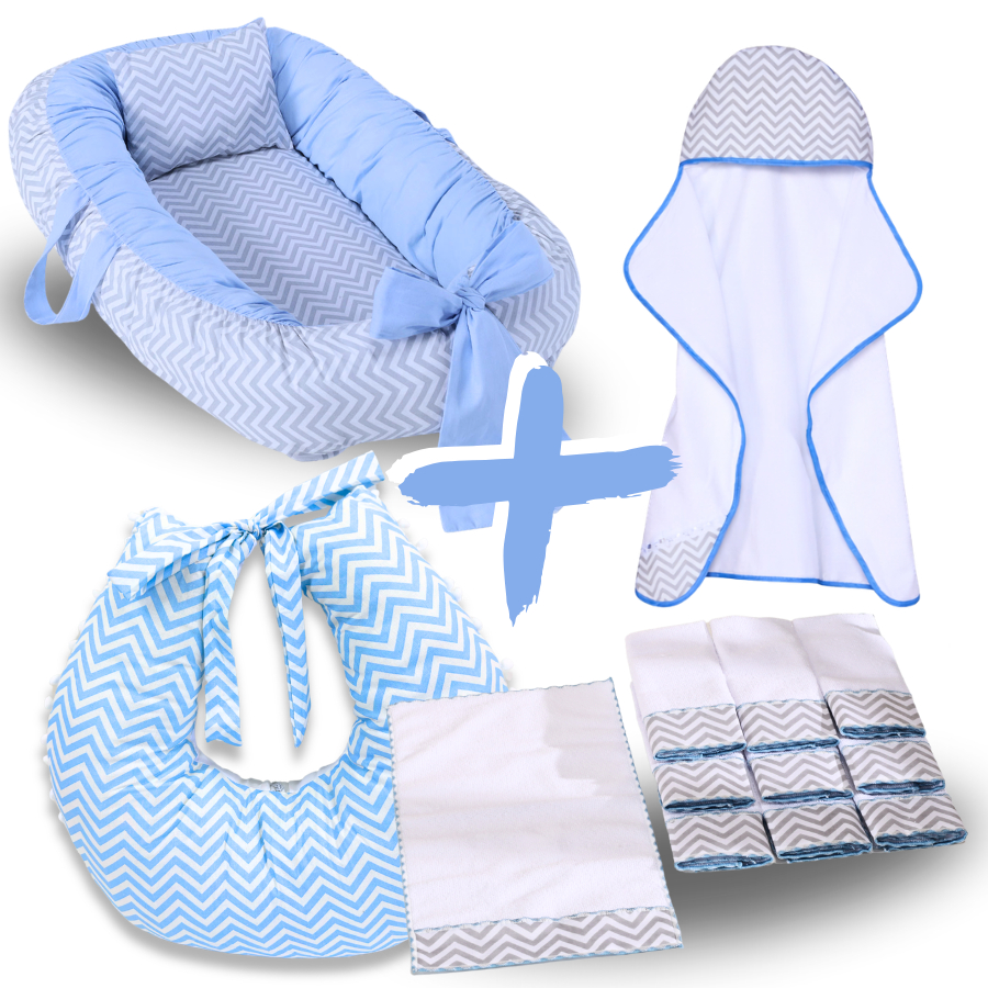 Kit Ninho Redutor de Berço Bebe + Toalha de Banho Forrada + 6 Toalha de Ombro + Almofada Amamentação