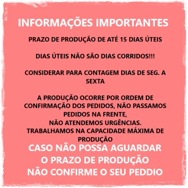 Sob encomenda: envio após 15 dias da compra