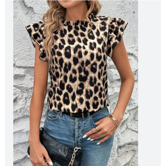 Casual Blusa Feminina Geométrica com Manga de Babados Tamanho: 1XL