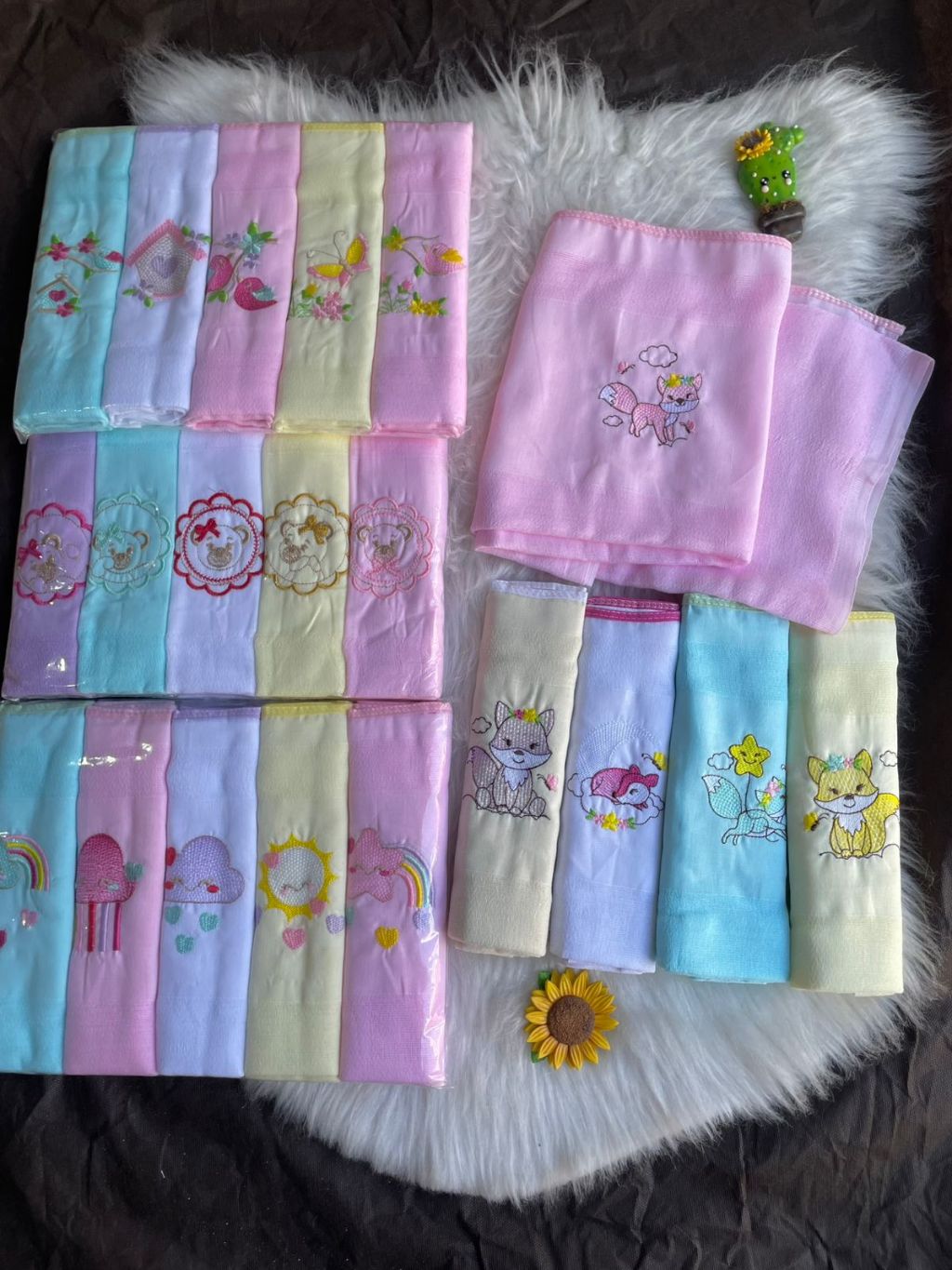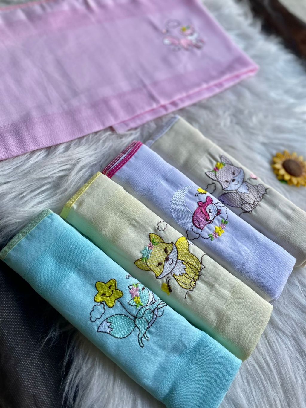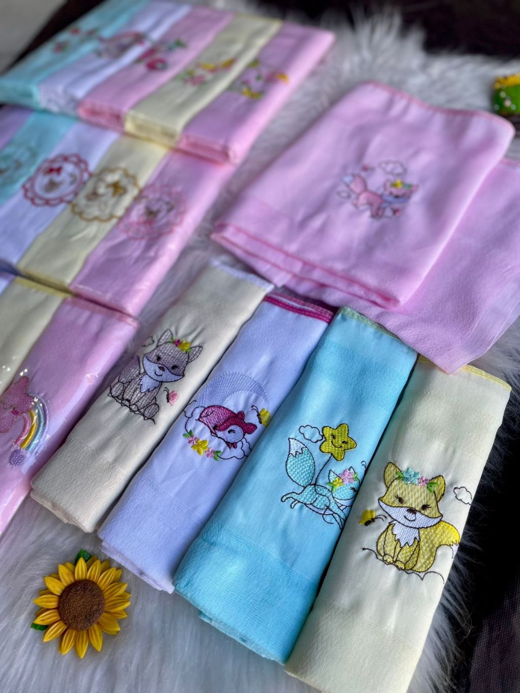 Fralda de Pano Colorida KIT Com 5 Fraldas Para bb Menina Bordada 70x70 cm Tecido DE Algodao RN