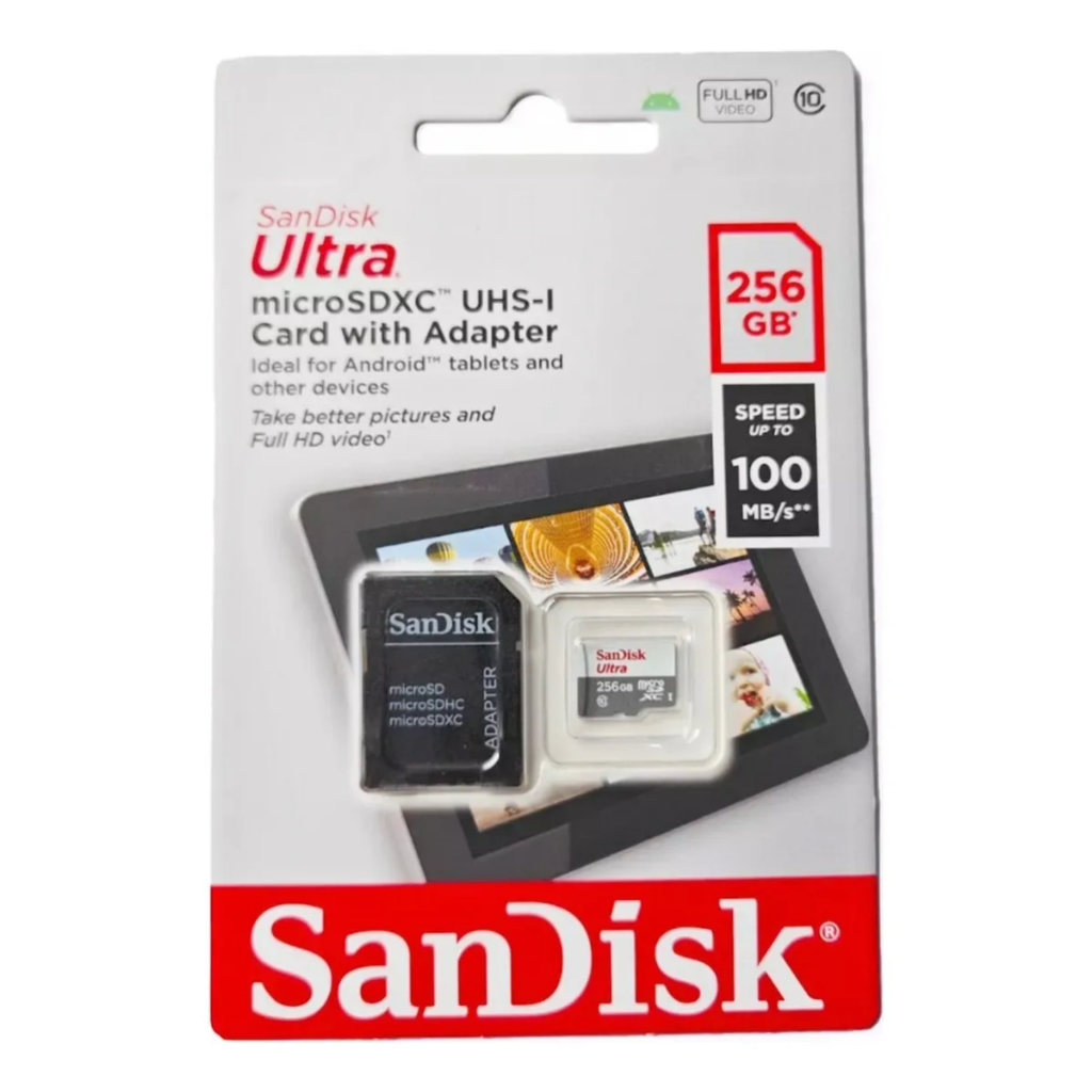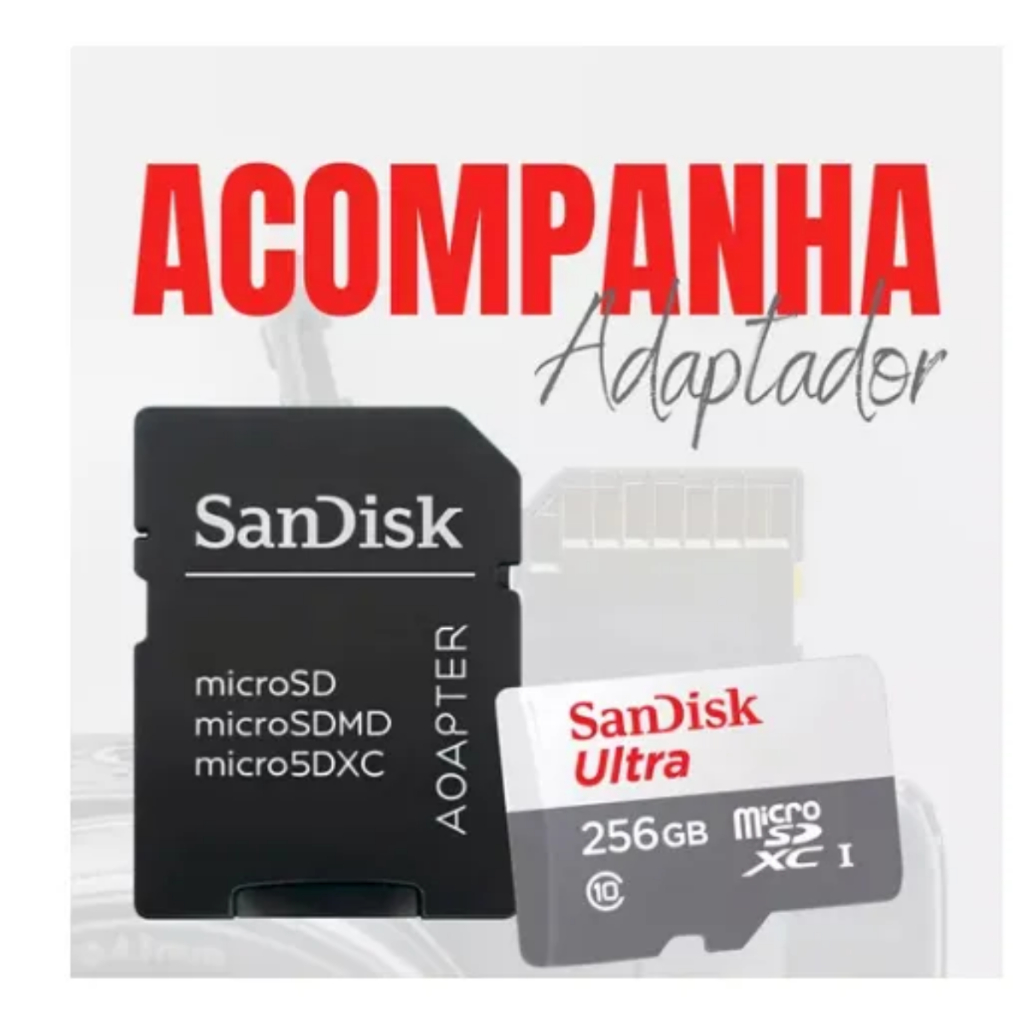 Cartão de Memória MicroSD 256GB SanDisk Ultra Classe 10 100MB/ com Adaptador