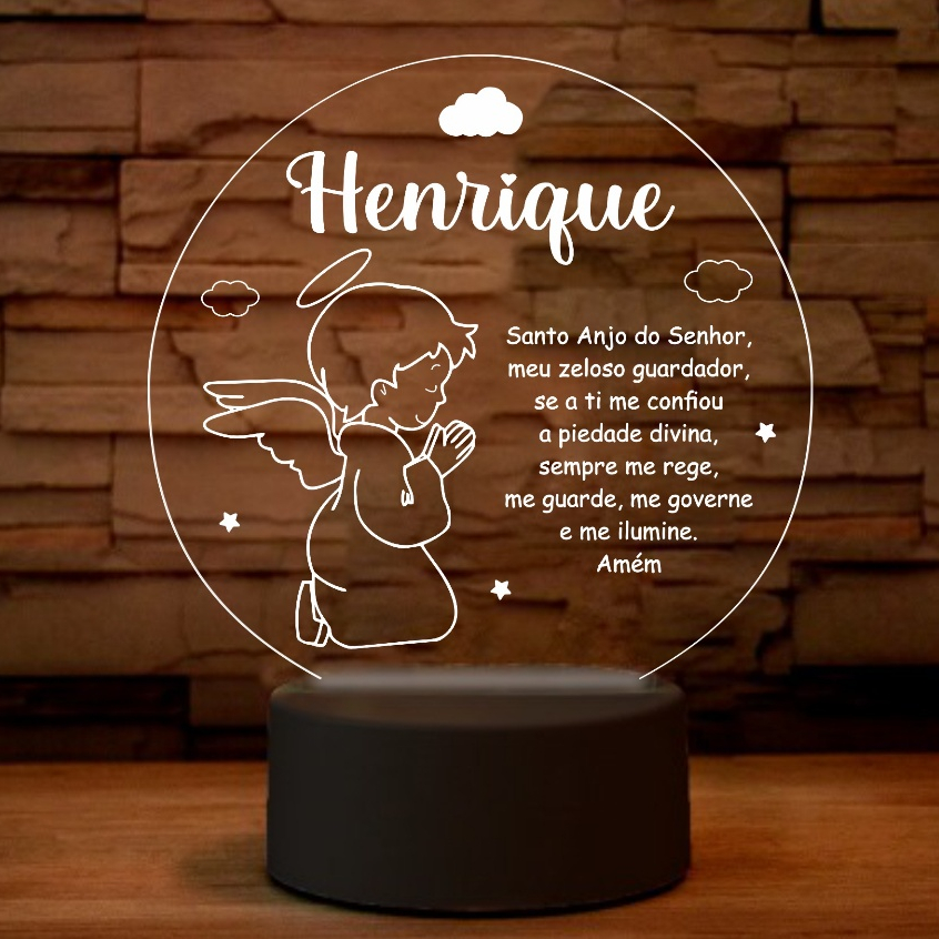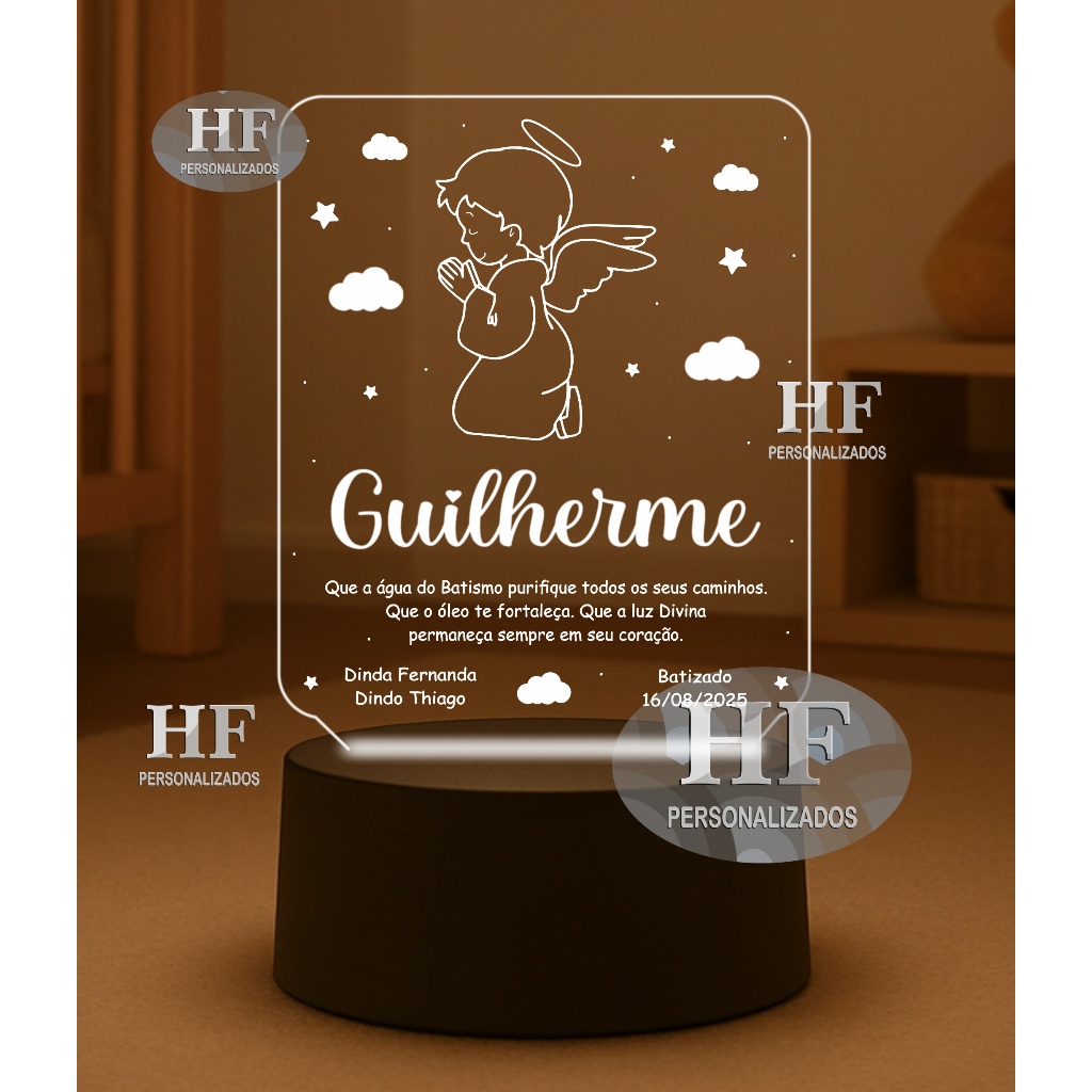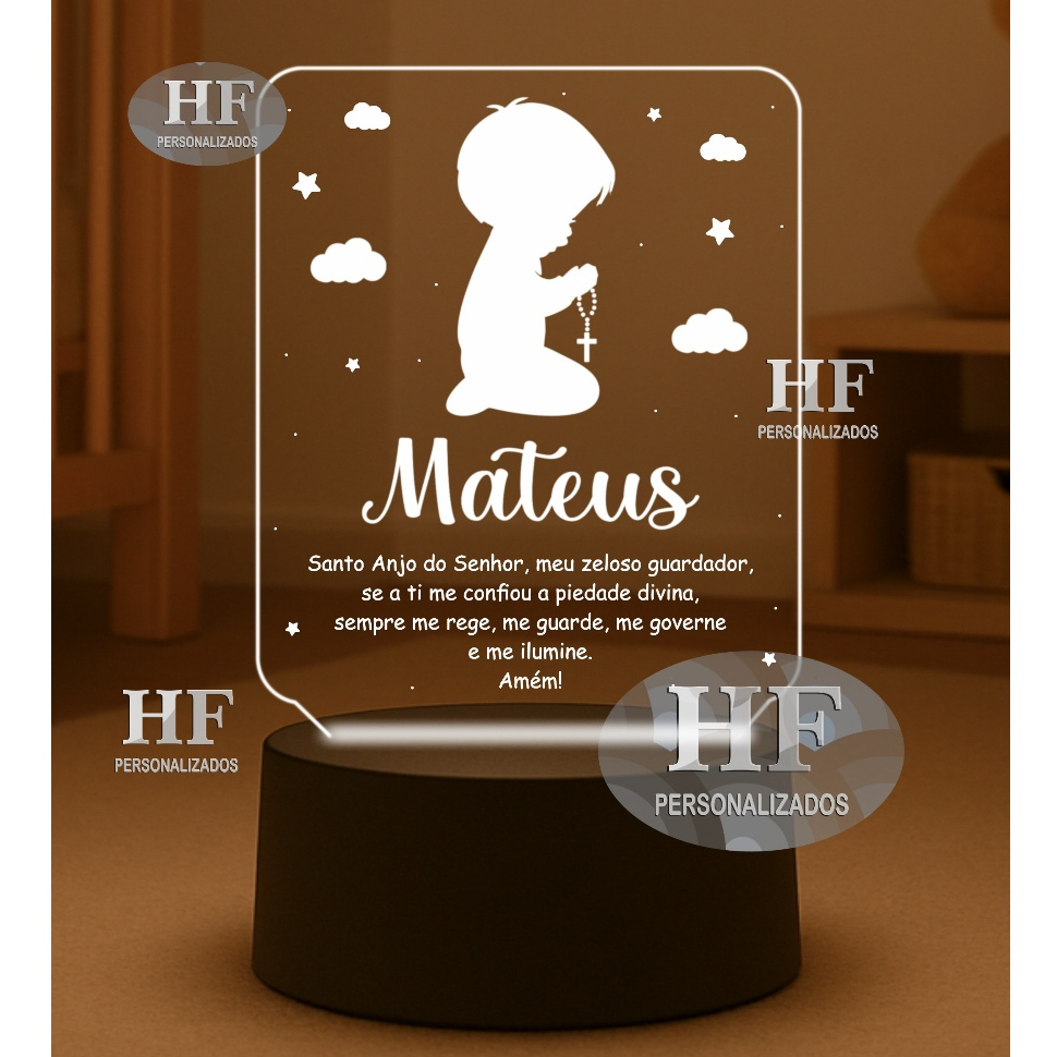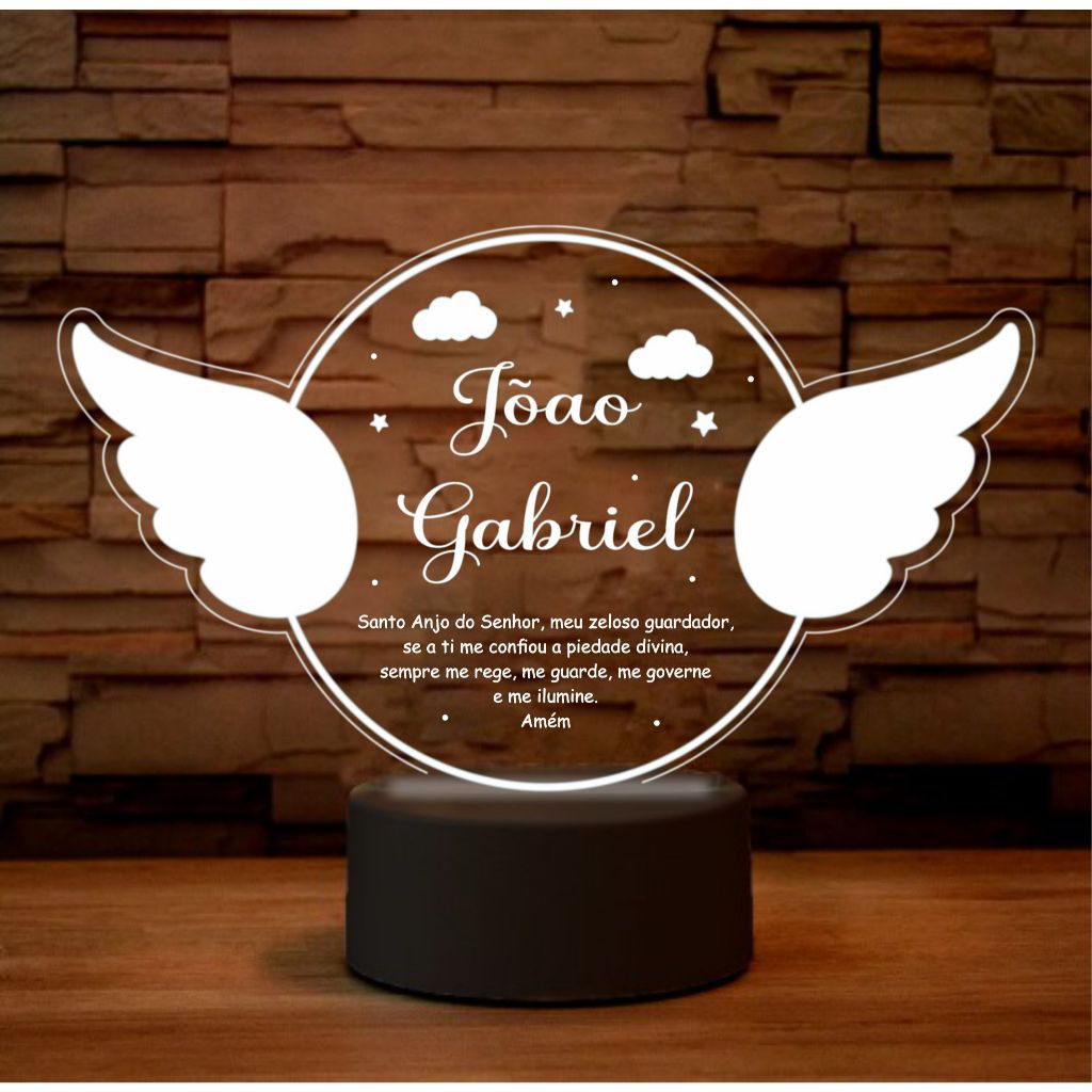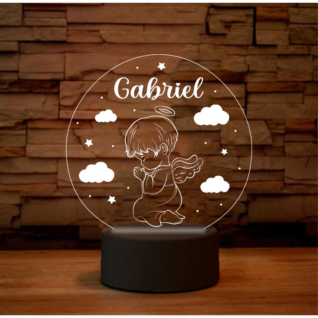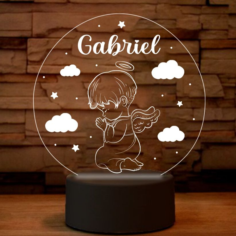 Luminária LED Anjinho, Anjo, Batismo, Nuvens - Oração Abajur Personalizado. Nome Personalizado!