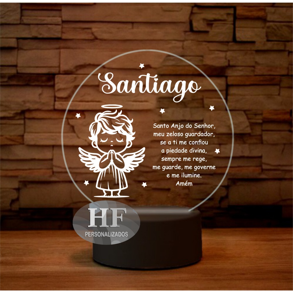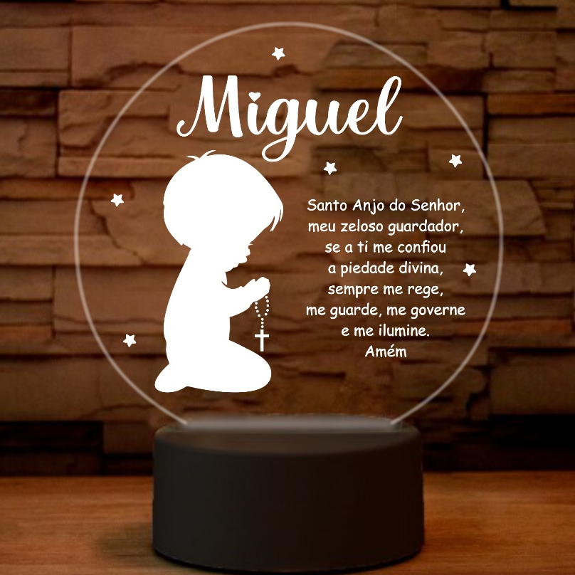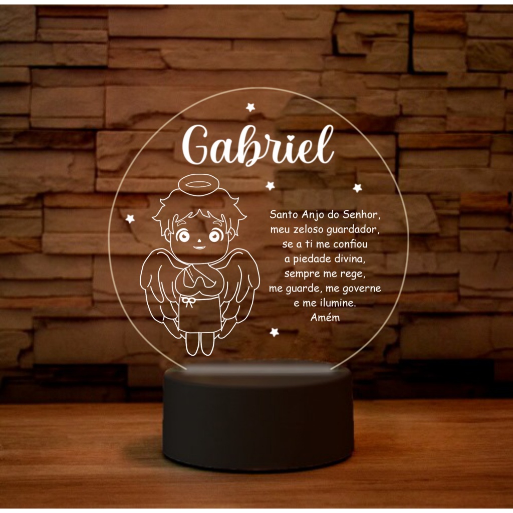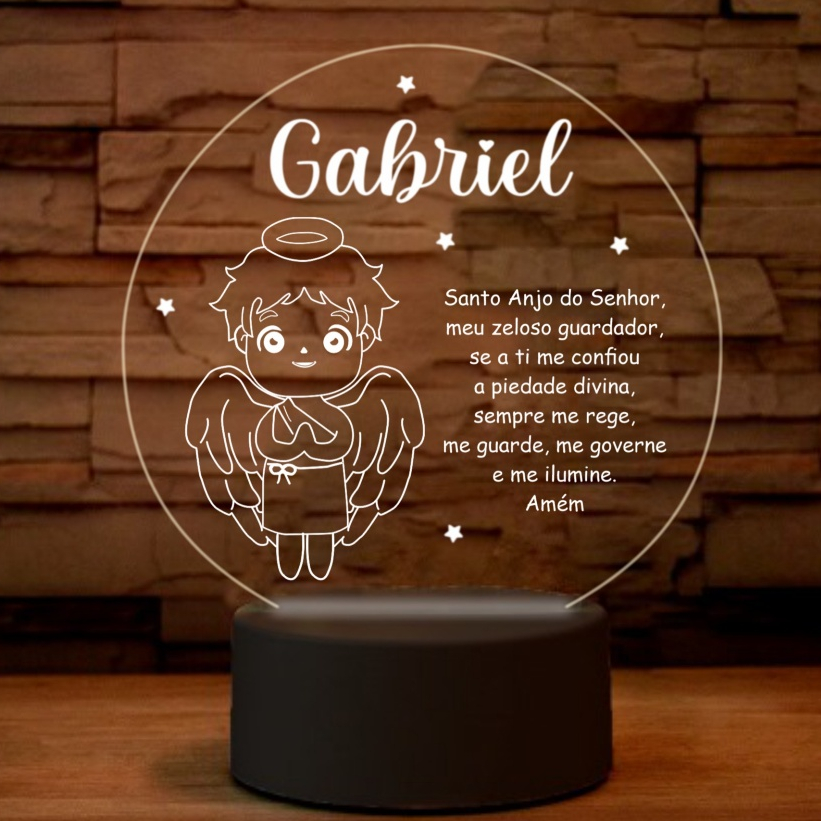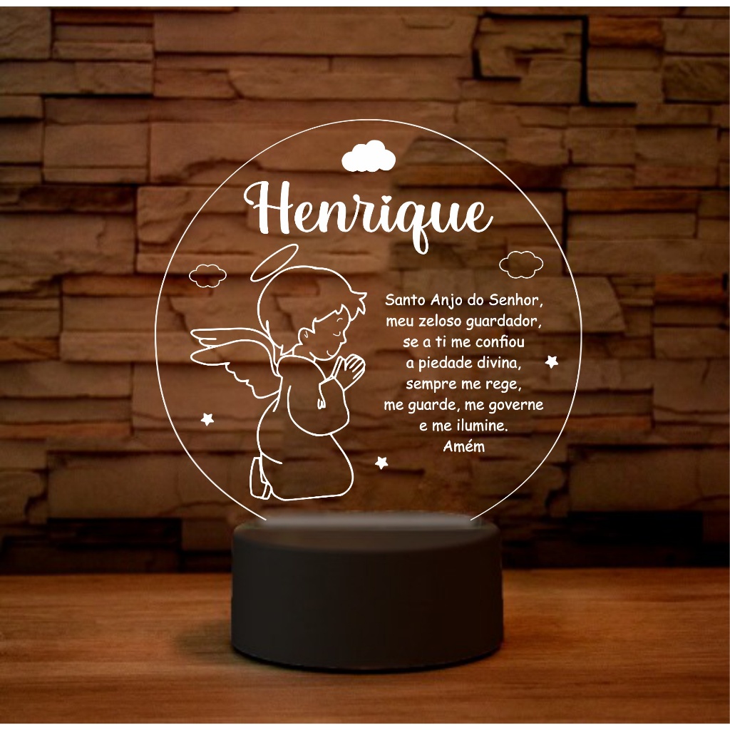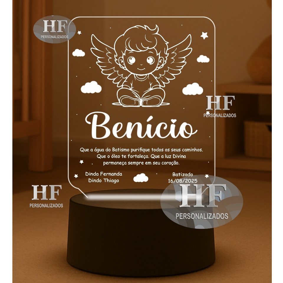 Luminária LED Anjinho, Anjo, Batismo, Nuvens - Oração Abajur Personalizado. Nome Personalizado!
