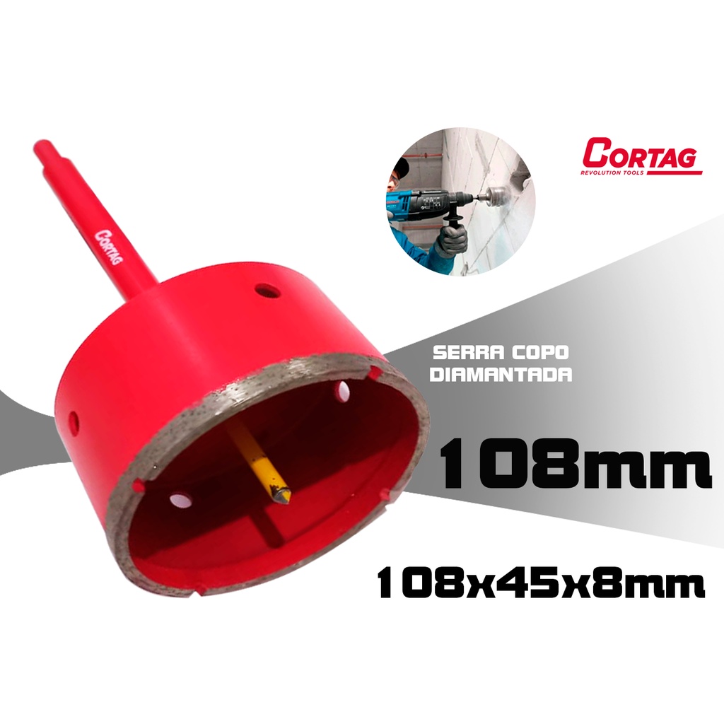 Serra Copo Diamantada Perfurar Circular Porcelanato Parede Piso Concreto Cerâmica Várias Medidas