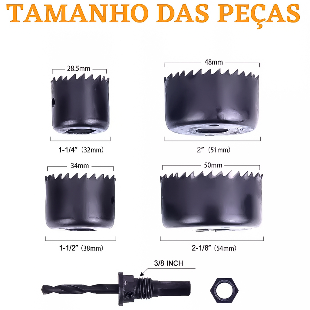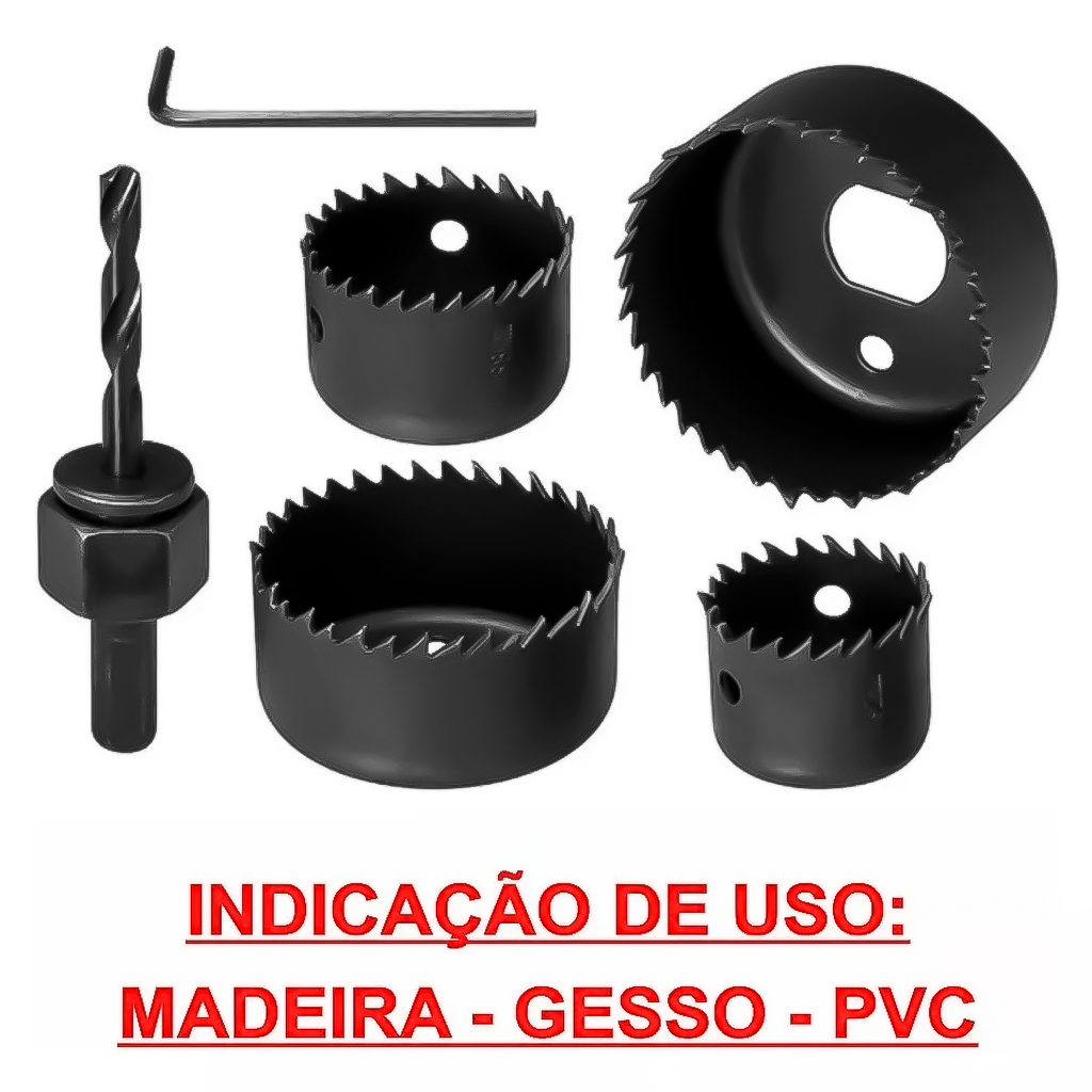 Kit Jogo Serra Copo 6 Peças 32 A 54 mm Madeira Gesso Pvc Para Uso Profissional