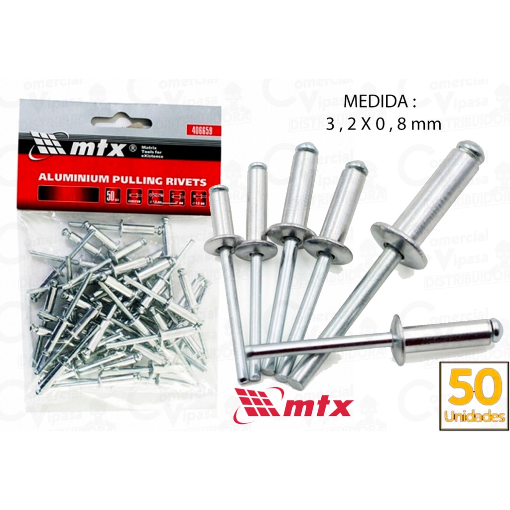 Rebite Pop Repuxo Alumínio 50 Peças Várias Medidas Para Fixação Plásticos Vidros Madeira Metais